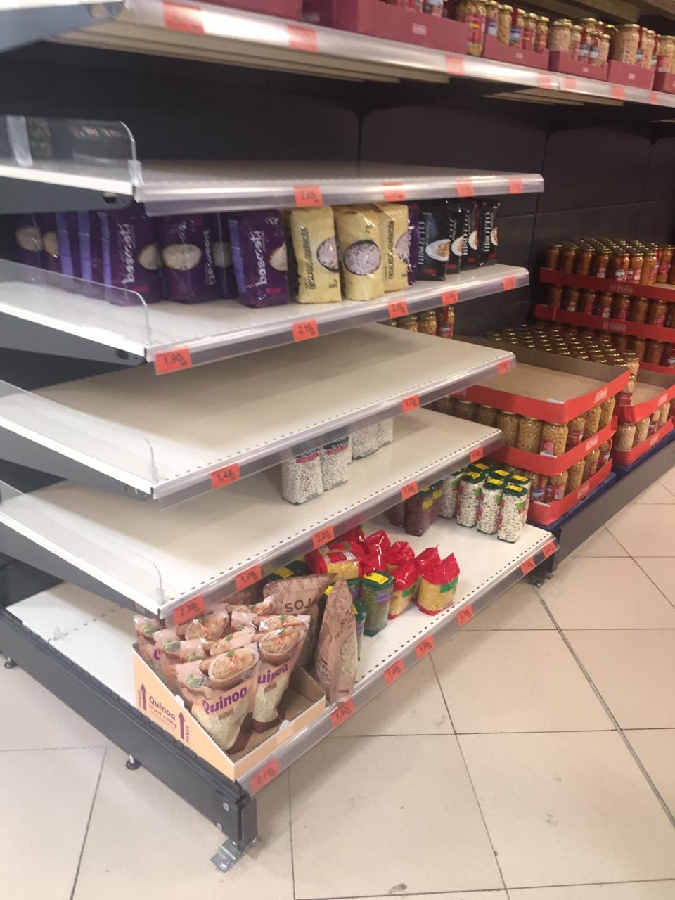 학교 휴교령이 내려져 많은 이들이 집에 있어야 해 그런지 한 마트에서도 이렇게 물건 사재기가 됐네요.