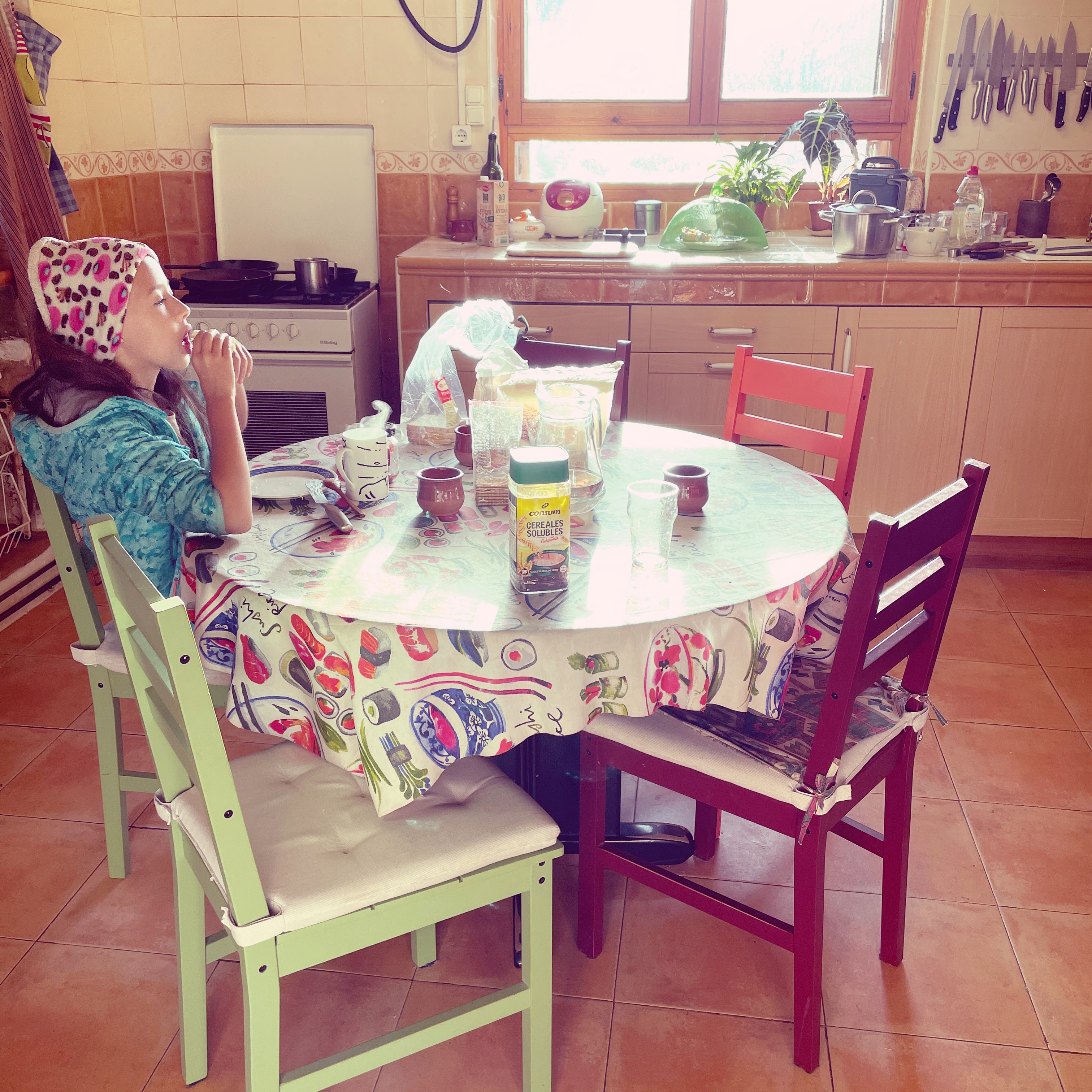 아침에 햇살이 눈부시게 비추면 기분이 평화롭다. 밤새 다들 잘 잔 것 같다. 막내 사라가 일찍 일어나 안녕~ 인사한다.