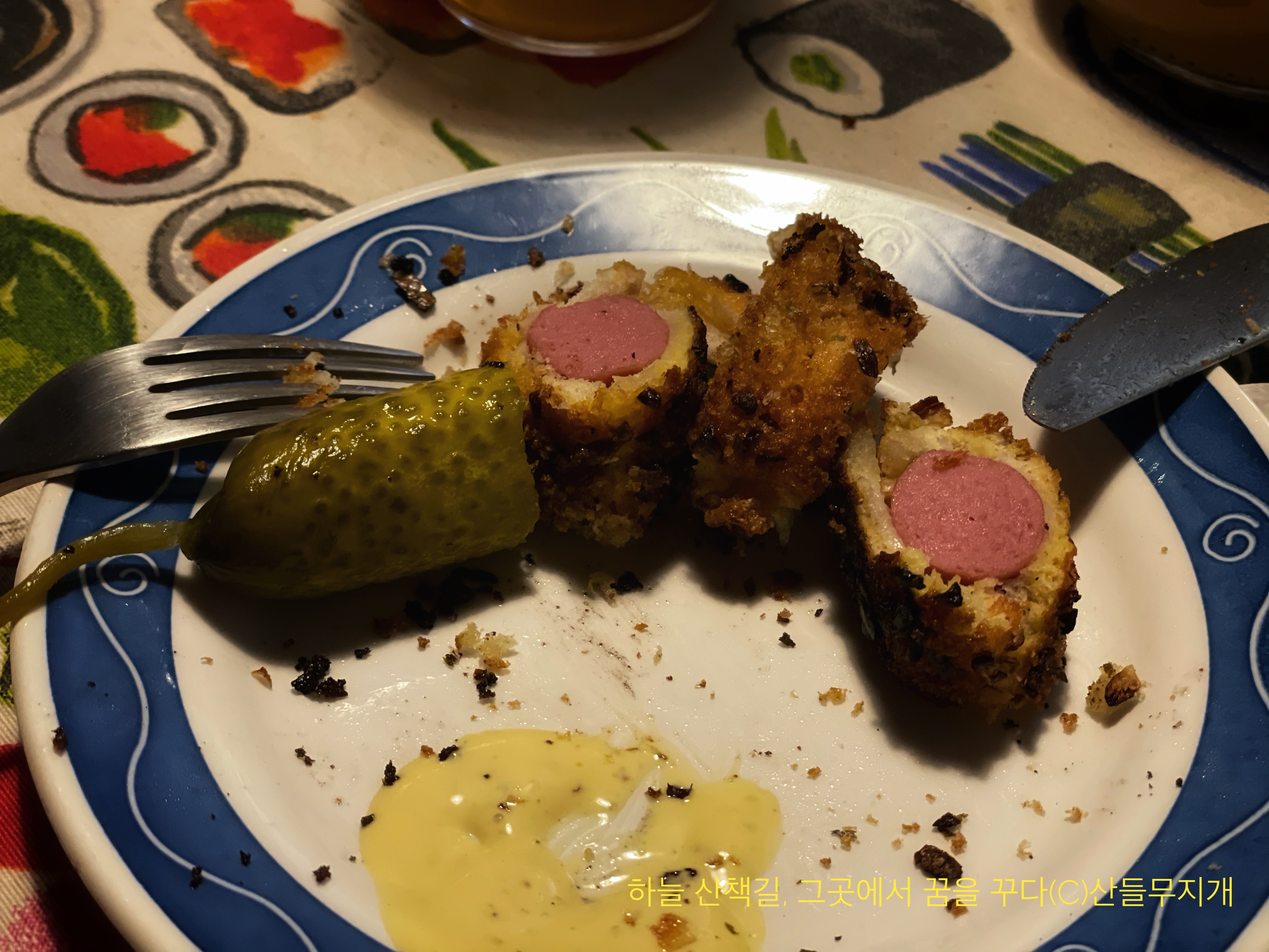 채식하는 산드라를 위해 치즈 도그도 만들었어요.