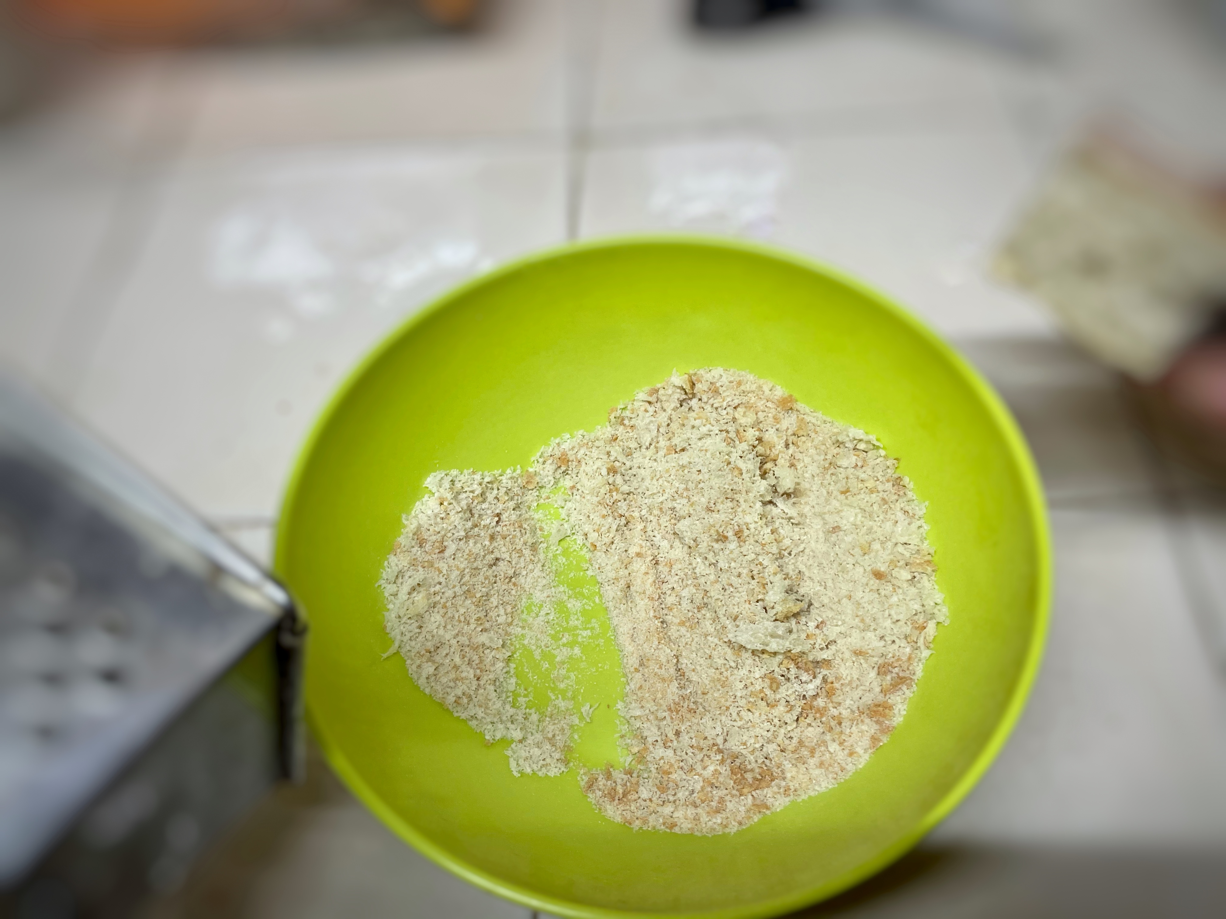 일단 저는 딱딱해진 바게트 빵을 위의 사진처럼 갈았답니다.