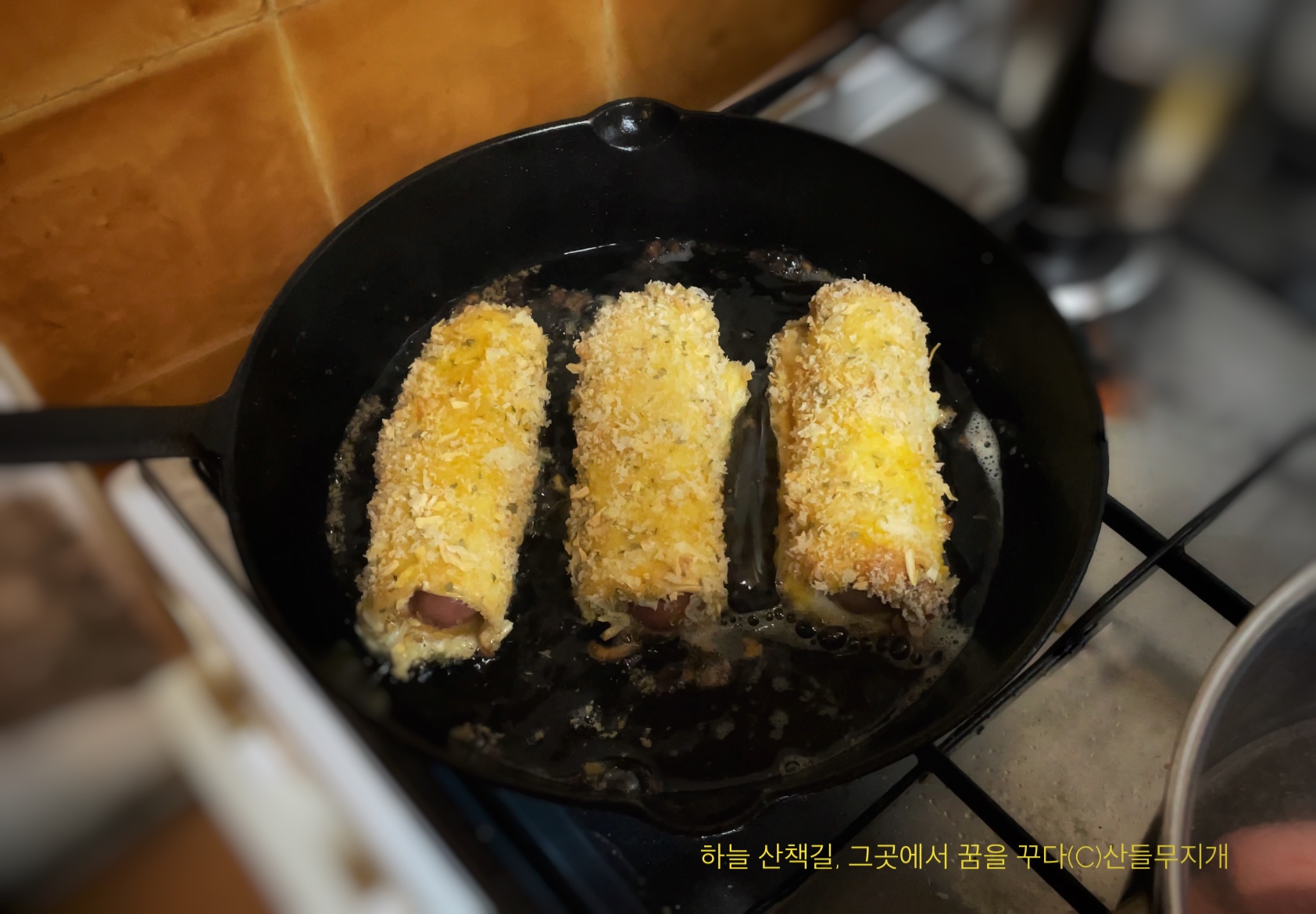 아삭바삭 맛있는 빵가루와 함께 먹는 식빵 핫도그!!!