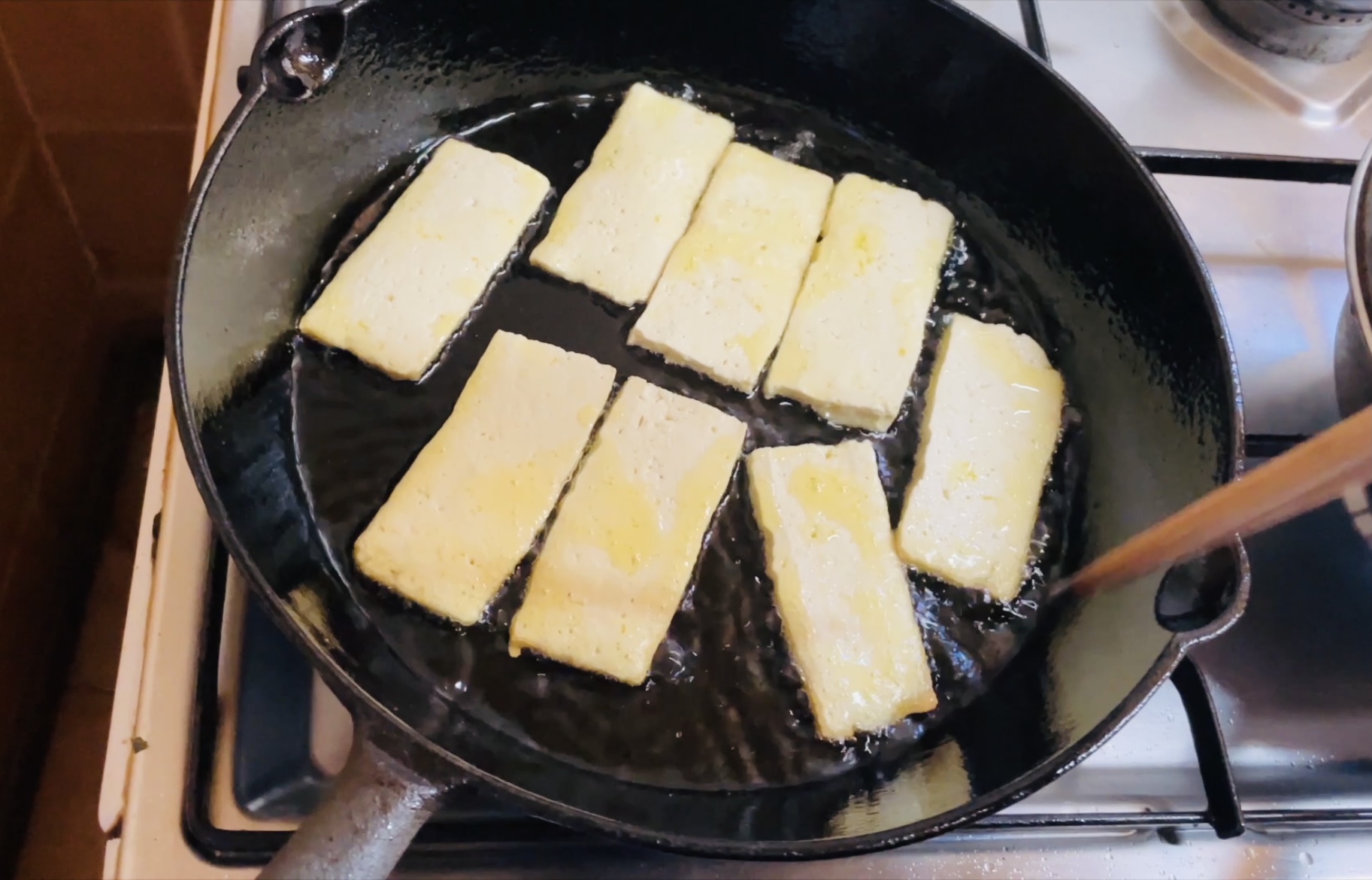 두부를 튀기듯 구워줬어요. 바삭한 느낌이 날 수 있도록 말입니다.