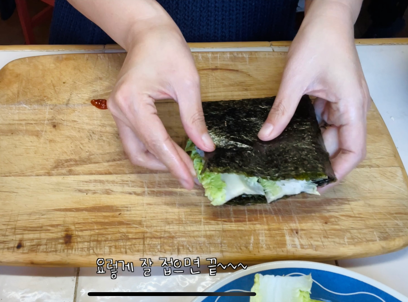 이번에는 며칠 전 유튜브 동영상에 김밥하는 영상을 올렸더니, 어떤 알고리즘이 만들기 쉬운 접는 김밥을 소개해줬답니다. 얼마나 호기심 일고 신기한지, 직접 해 먹어보고 싶어, 집에 있는 재료를 가지고 도전해봤습니다.