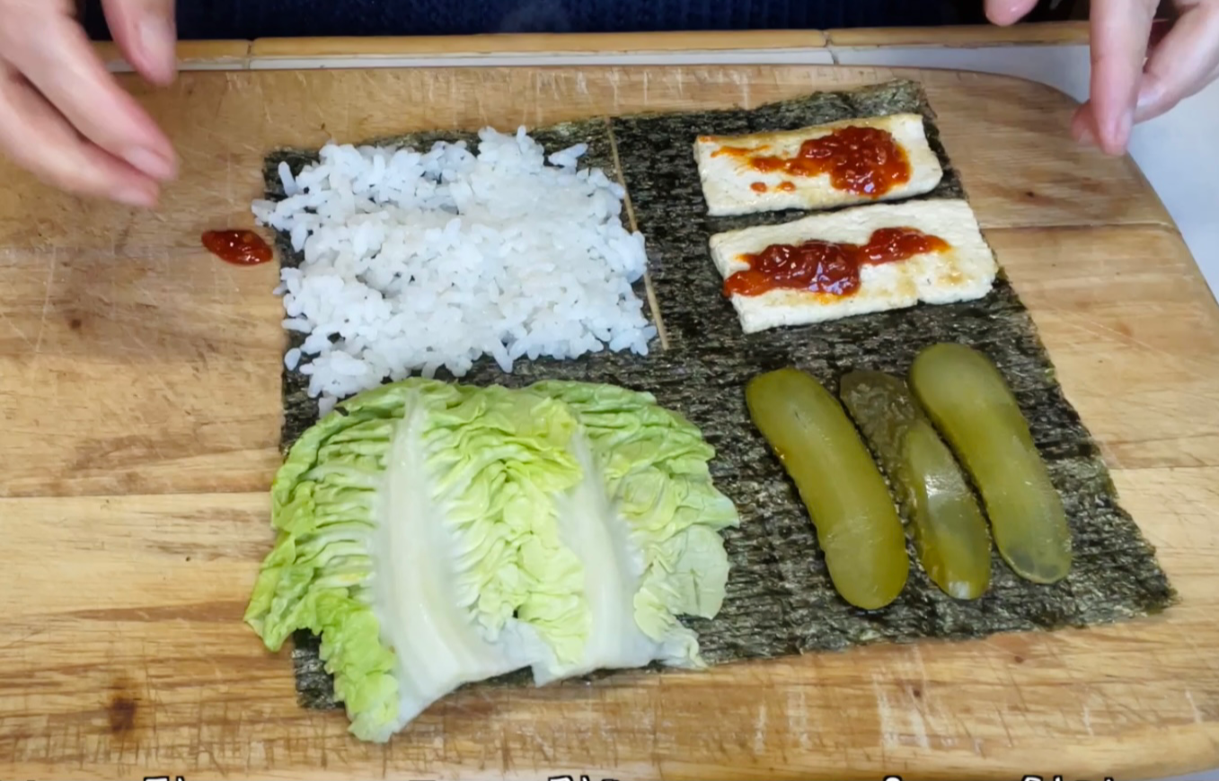 그런데 SNS에서 핫하다는 그 접는 김밥을 다~ 아시는 줄 알았는데, 모르시는 분들이 너무 많아서 이곳에서 제대로 공유해보려고 합니다. 보통은 햄, 단무지, 어묵, 게맛살, 달걀지단 등으로 요리를 하는데요, 저는 이런 것들이 없어 저만의 독특한 콘셉으로 한번 만들어봤습니다.