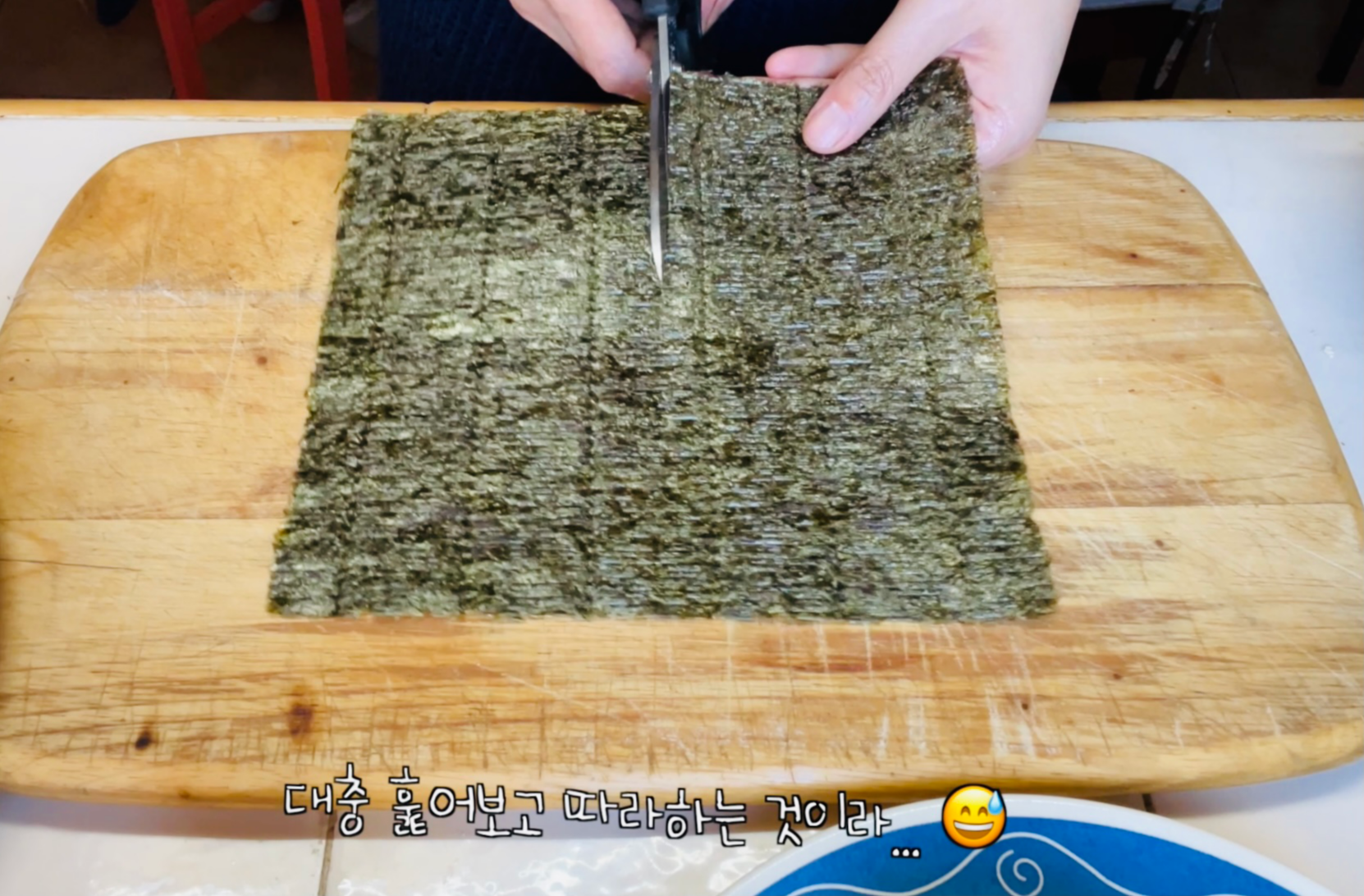 이번에는 며칠 전 유튜브 동영상에 김밥하는 영상을 올렸더니, 어떤 알고리즘이 만들기 쉬운 접는 김밥을 소개해줬답니다. 얼마나 호기심 일고 신기한지, 직접 해 먹어보고 싶어, 집에 있는 재료를 가지고 도전해봤습니다.