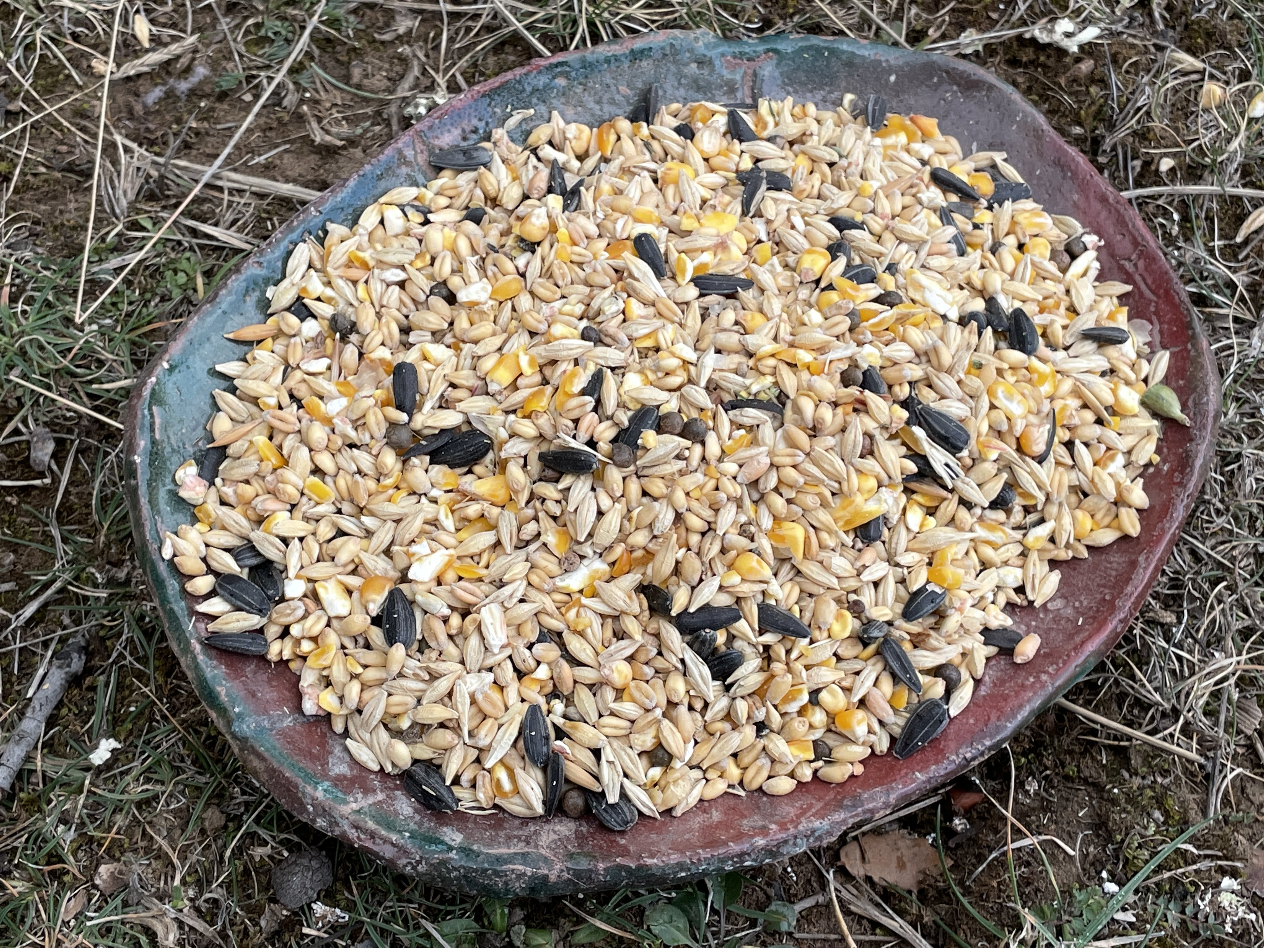 위의 사진인데요, 해바라기 씨, 통밀, 통곡, 옥수수 등이 있어요. 우리 닭들 정말 잘 먹고살고 있지요?