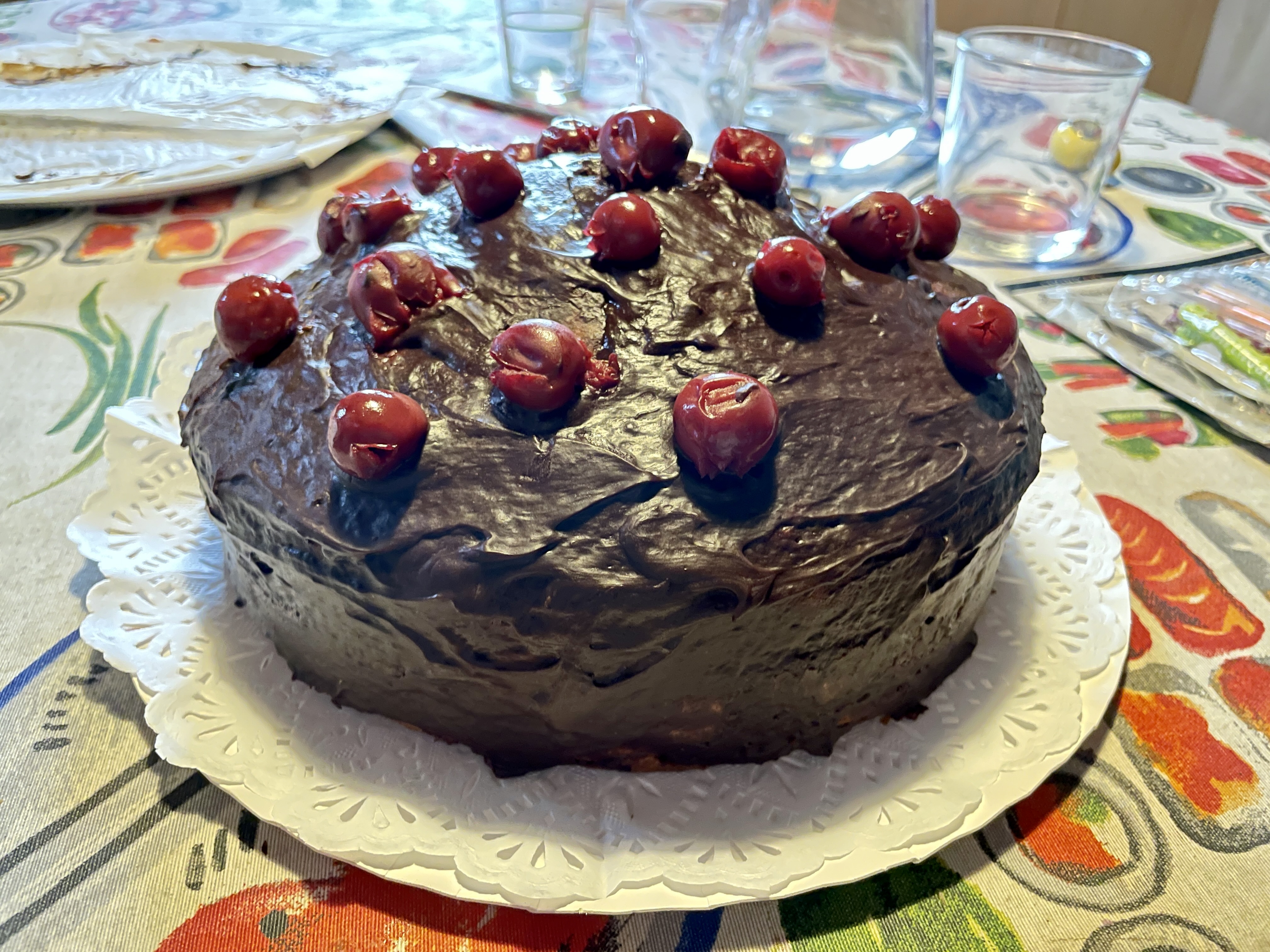 이번 산드라 생일 케이크는 아주 간단하게 했답니다. 요구르트 스펀지 케이크에 초콜릿 덧씌우고 체리 설탕 절임을 올렸거든요.