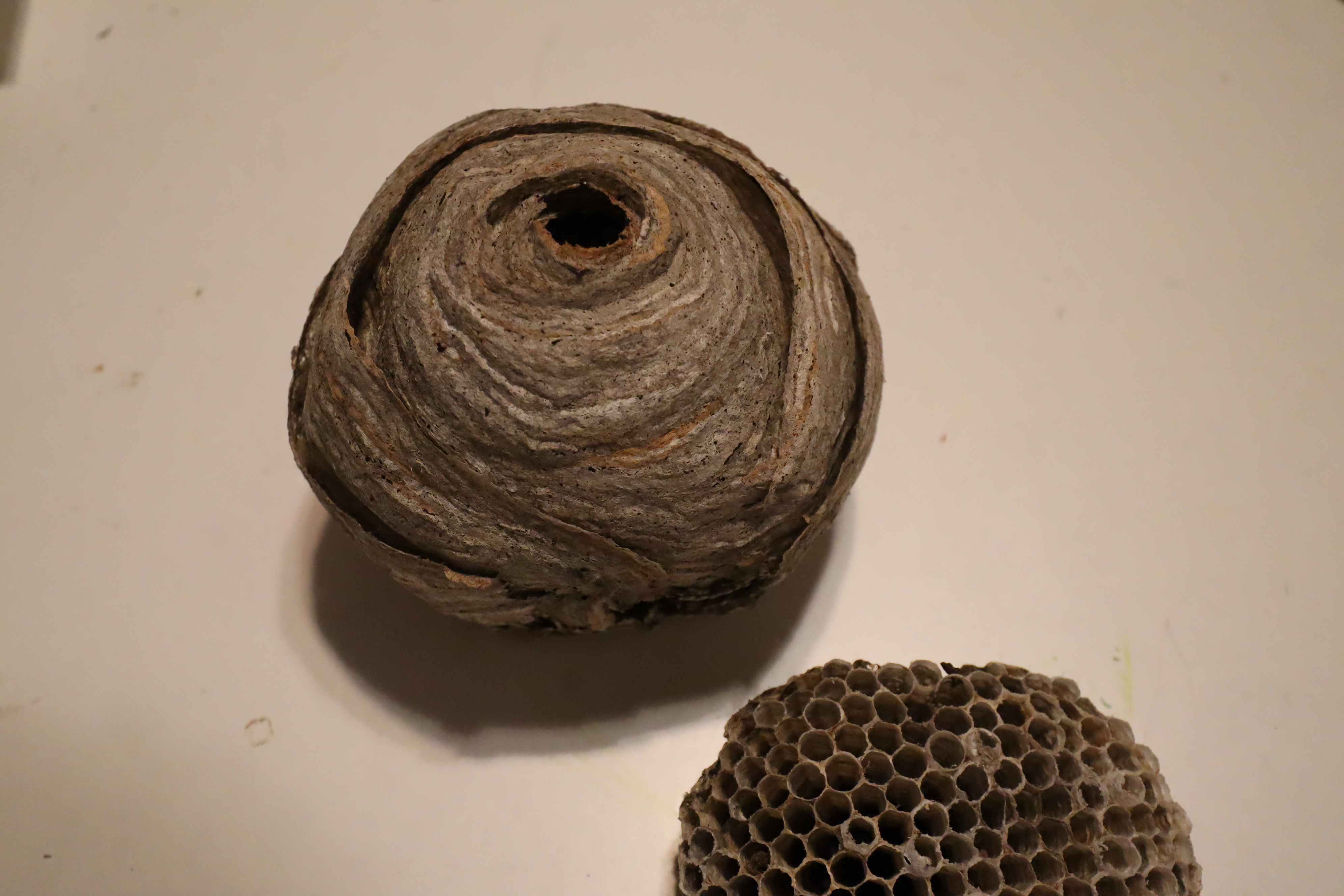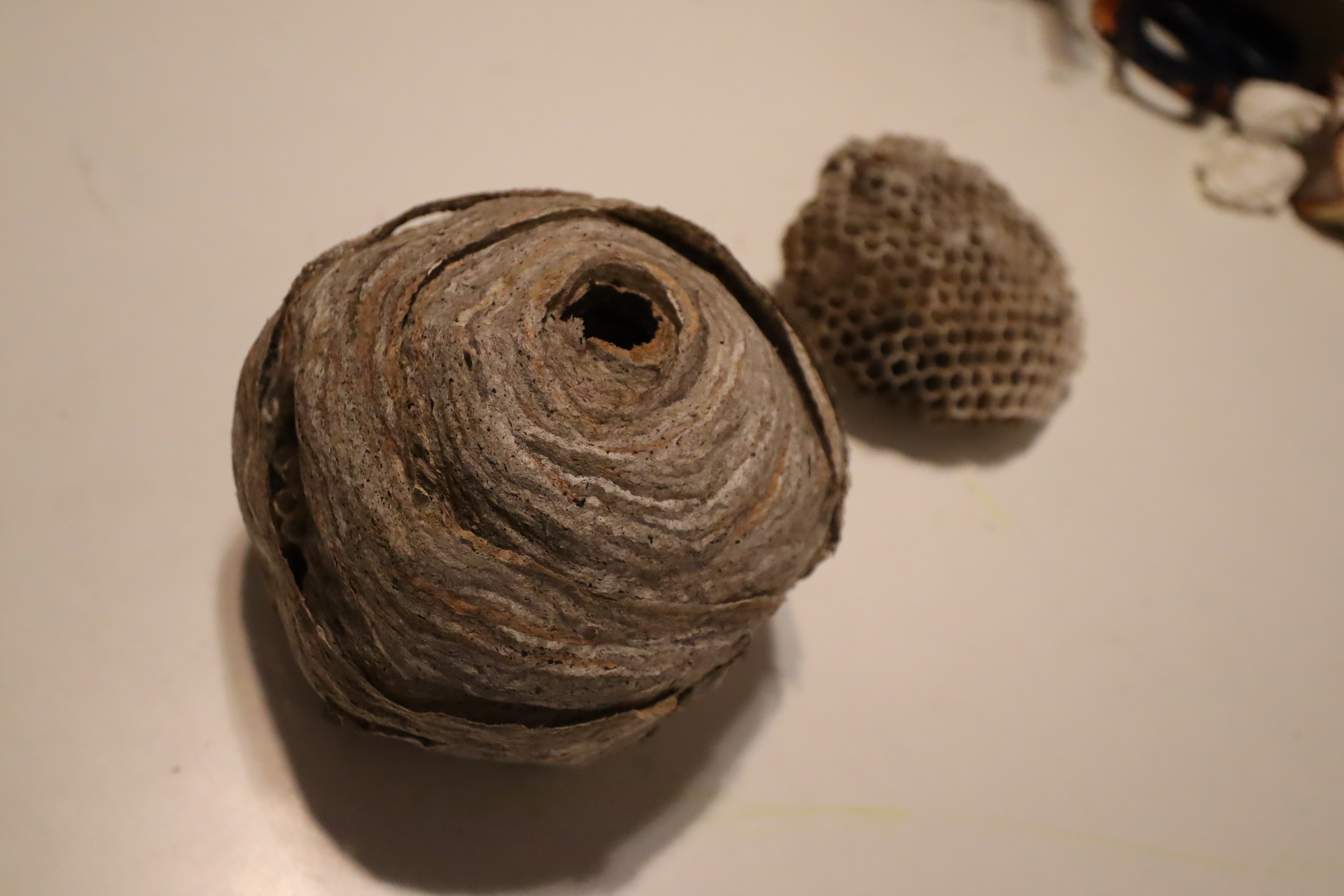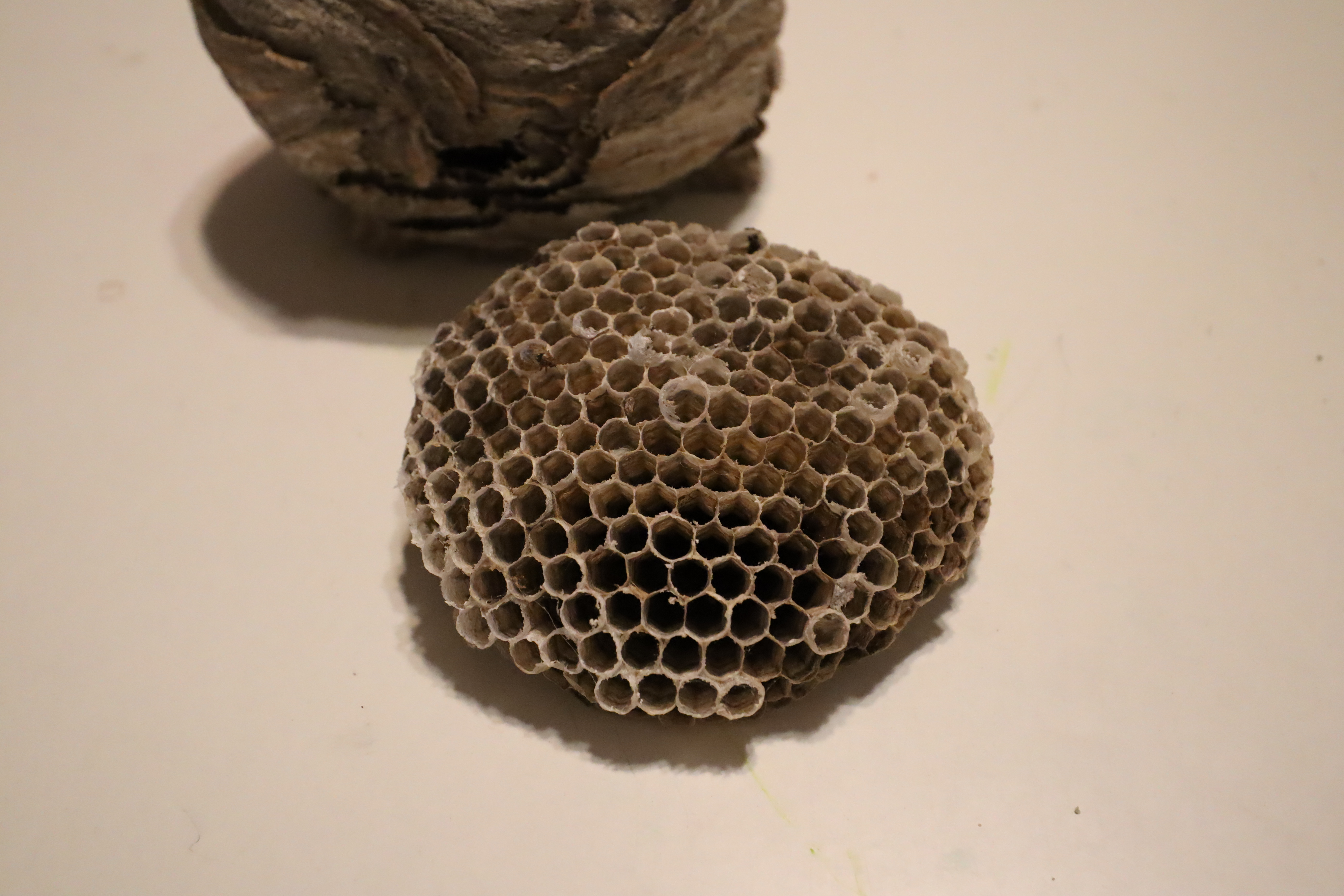 그런데 이번에는 만지면 부서질 것 같은 항아리 같은 벌집을 가져왔더라고요. 자세히 보니 무슨 천을 감싼 아주 신비로운 말벌집이었어요. 이 말벌집은 1년 살이, 유럽 말벌이 살다 버린(?) 벌집이라고 하네요. 요즘 아시아에서 온 아시아 말벌이 공격적으로 꿀벌을 잡아먹는다고 해서 참 큰 문제로 떠오르고 있습니다. 그에 비해 유럽 말벌은 개체수 조절을 하면서 생태계에 존재했는데 2004년 프랑스로부터 들어온 이 아시아 말벌은 개체수가 폭발적으로 증가해 지금 스페인에도 엄청난 위협을 주고 있다고 합니다. 실제로 아시아 말벌 떼는 하나의 꿀벌집을 모조리 초토화 낸다고 하네요.