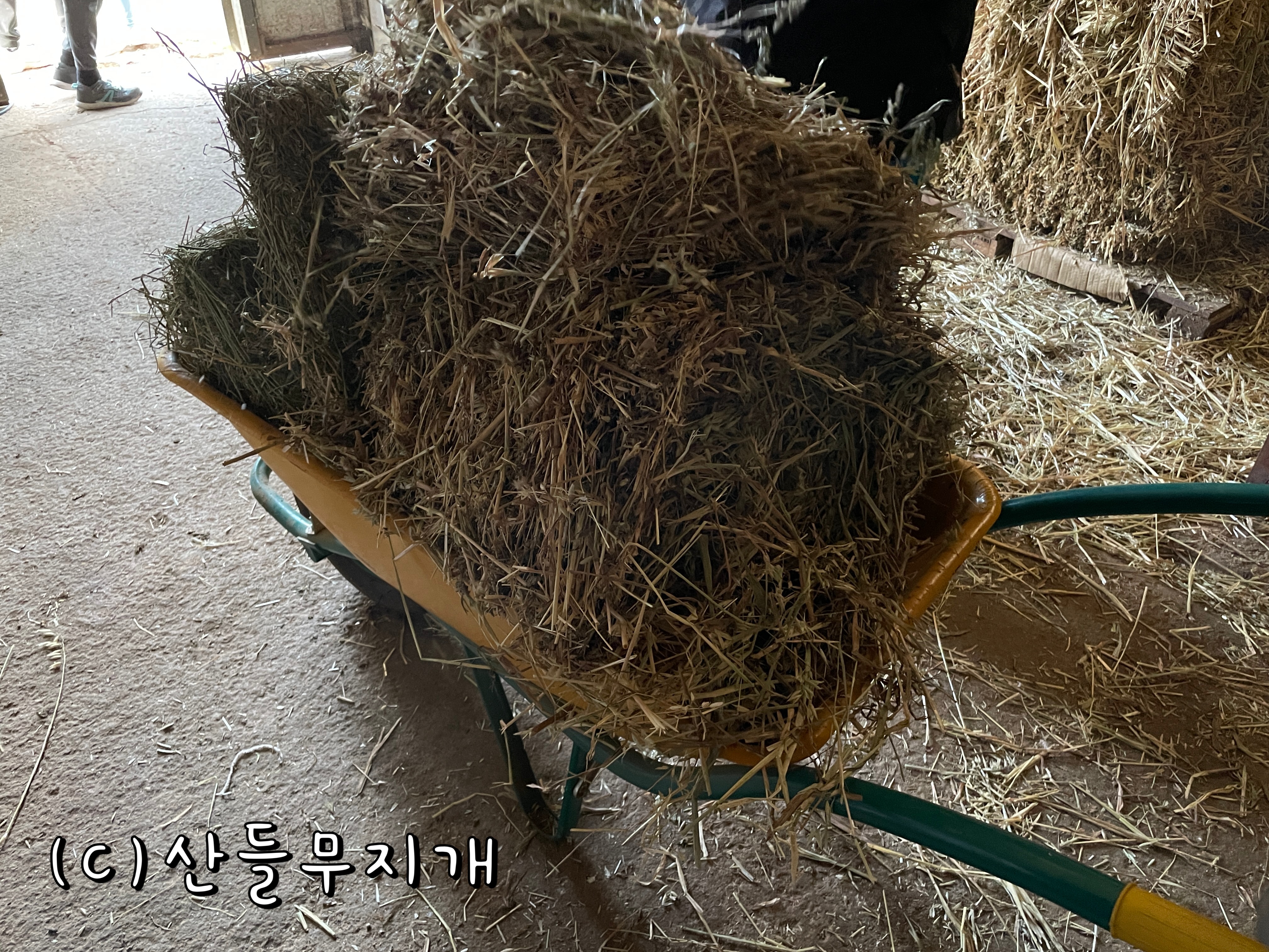 창고에서 아이들이 짚을 꺼내고, 함께 오신 빅토르 학교 선생님도 아이들에게 먹이 주는 방법을 가르쳐주셨다.