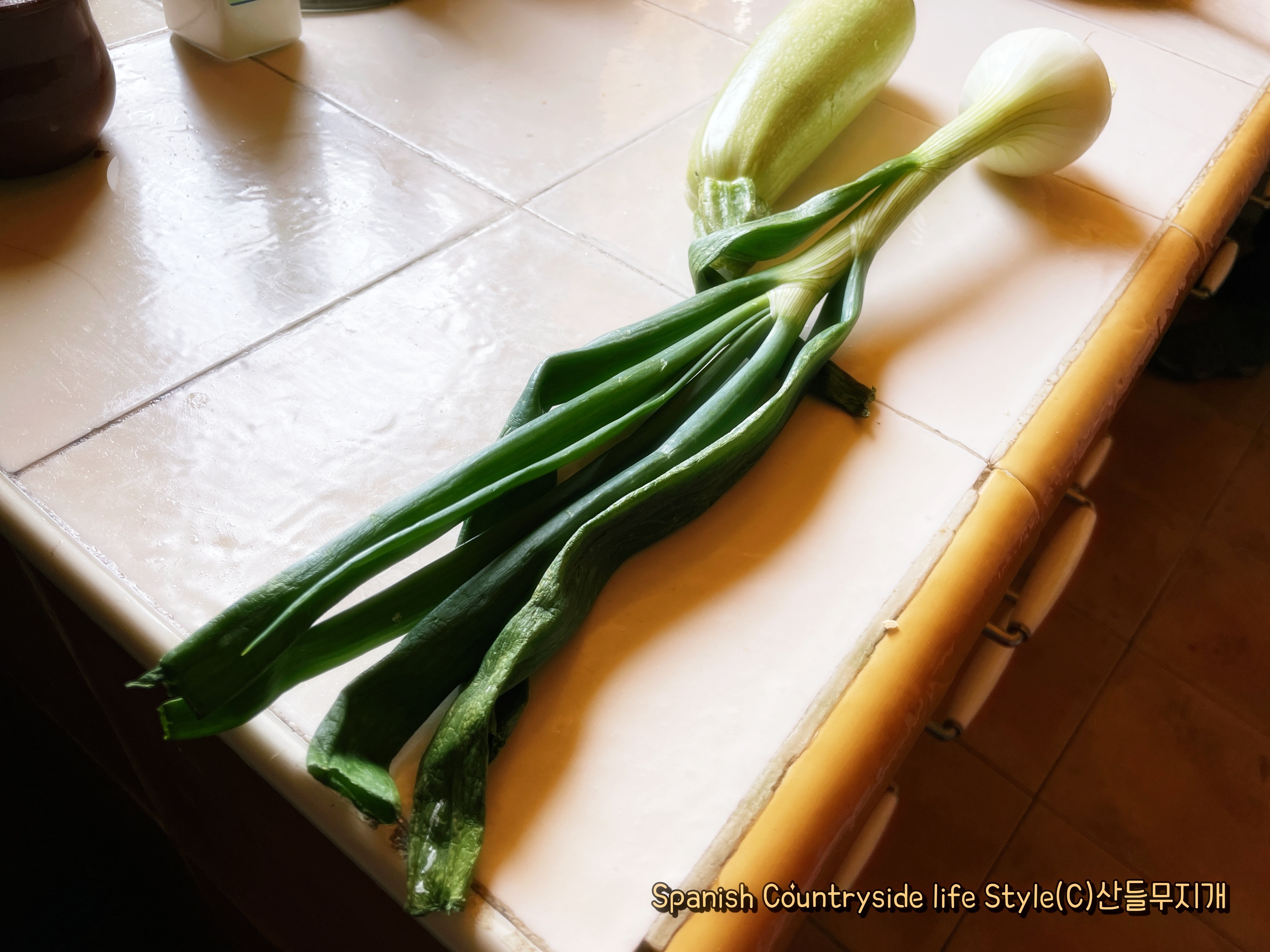 또한, 위의 사진처럼 스페인 사람들은 어린 양파를 자주 먹는데요, 파의 푸른 부분은 다 떼어내고 먹습니다.
