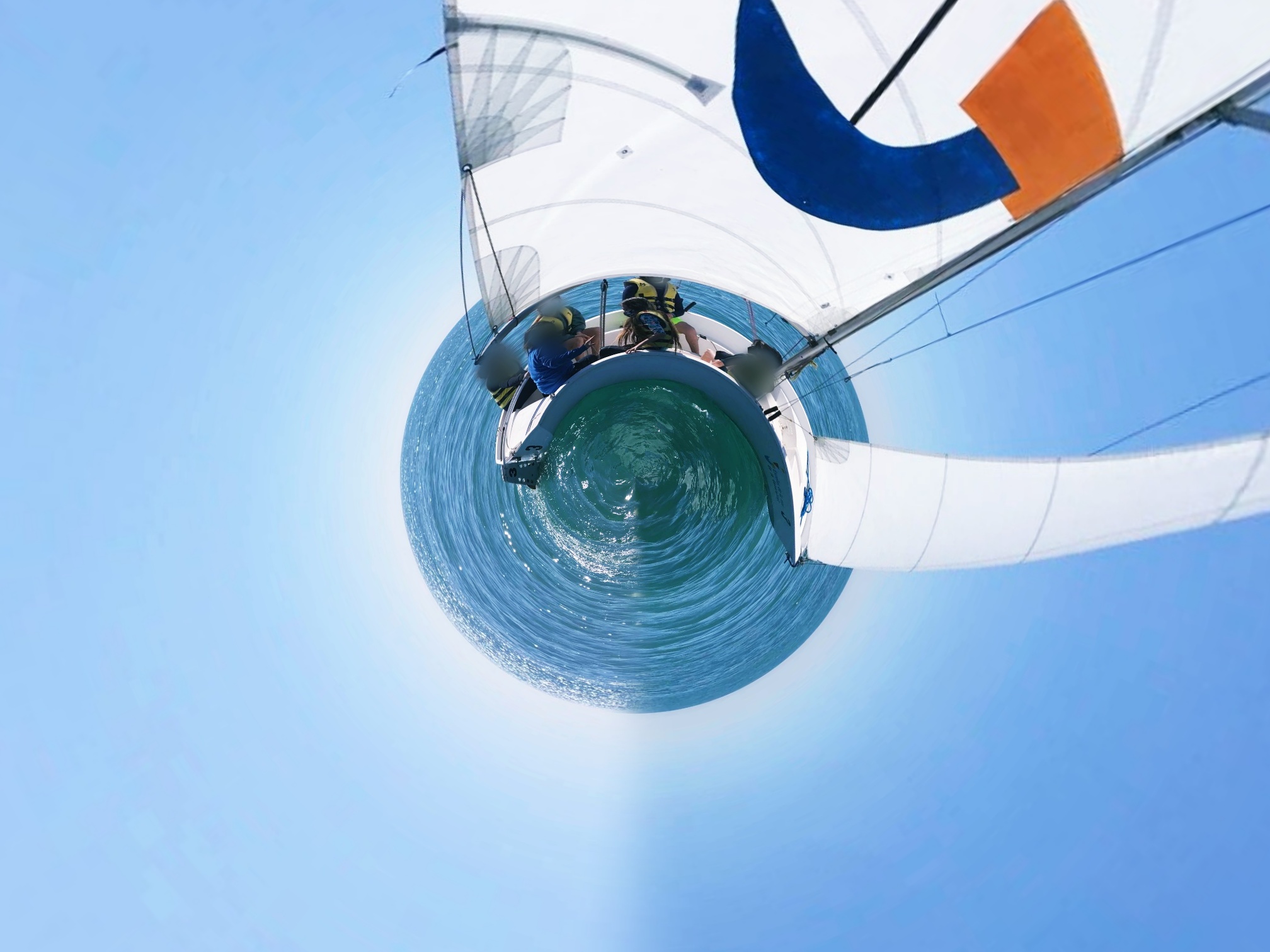 산드라는 세일 요트를 타고 바다로 나갔더라고요.