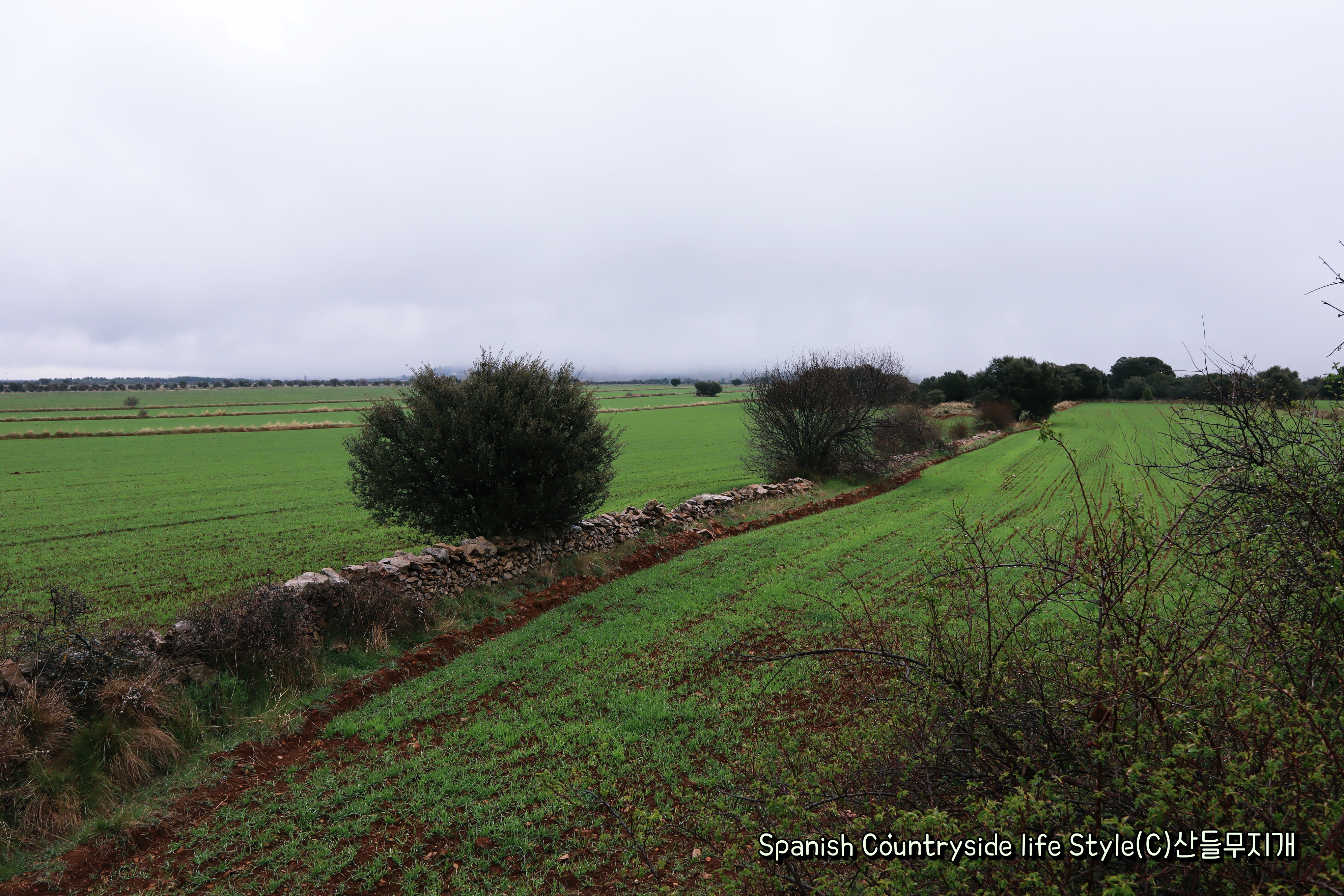 스페인 고산 평야에는 밀과 보리 싹이 오르고 있다. 푸릇푸릇 물 머금은 대지가 참 아름답다. 안개가 얇게 끼어 대조적인 아름다움을 보여준다. 내 책 표지 사진 배경인데 올해는 좀 달라 보일까? 매년 같은 자리에서 같은 풍경을 찍어 변화하는 모습 보는 것도 재미있겠다. (>. <)