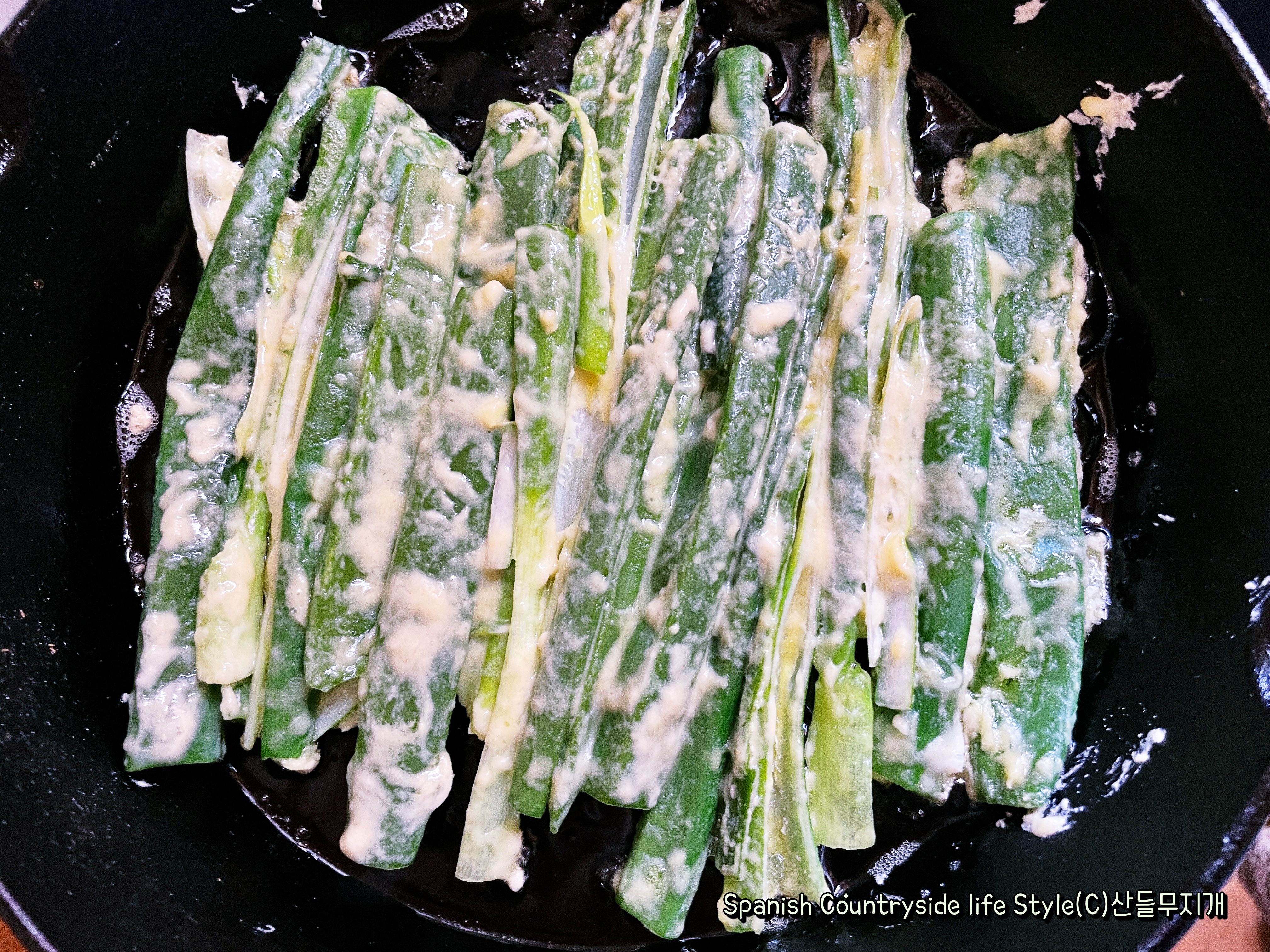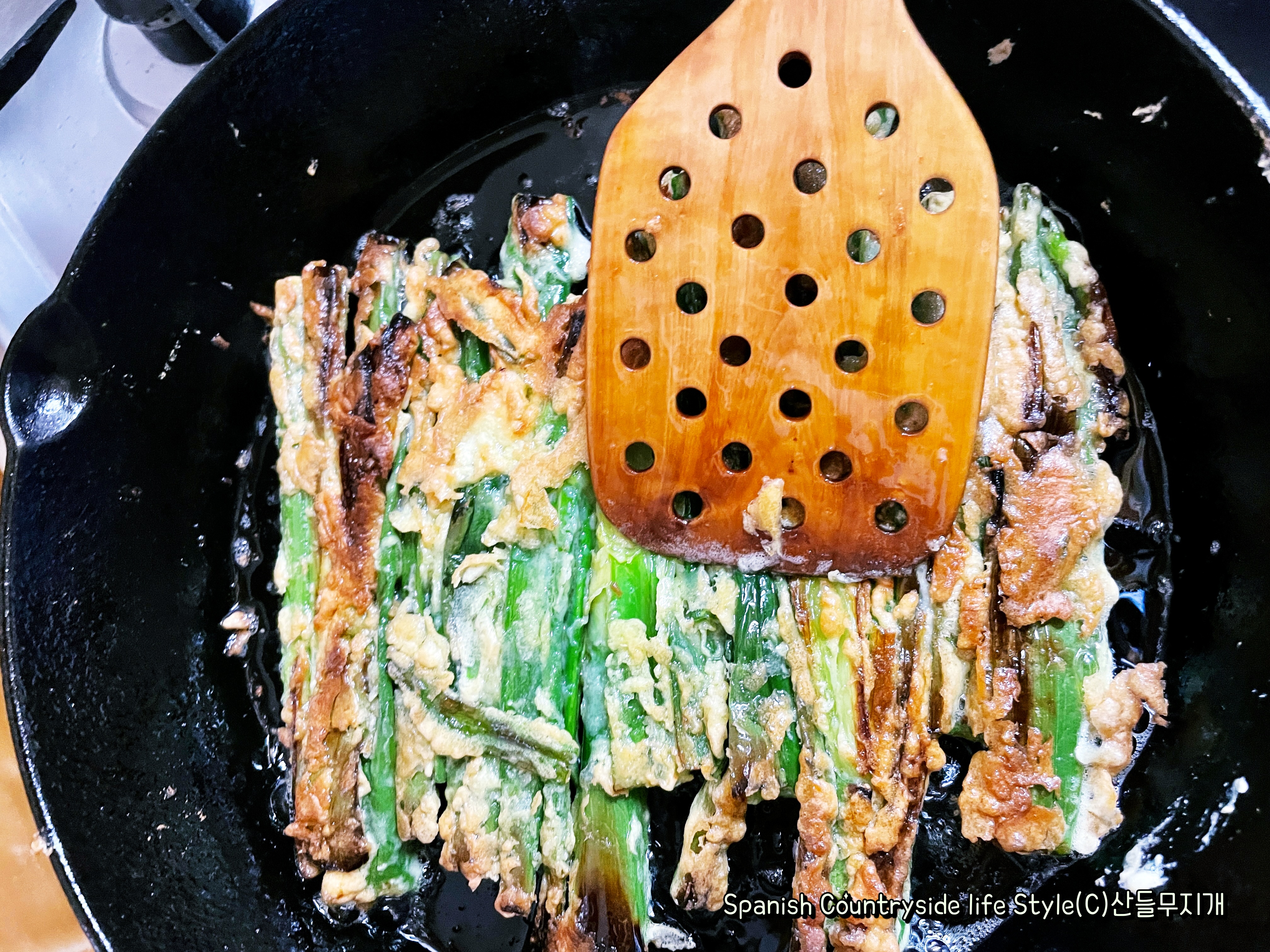 이번에는 우리 집 텃밭에서 수확한 대파인데요, 글쎄 대파를 전으로 부쳐먹으니 아주 맛있더라고요!!! 대파의 그 단맛이 전에 잘 우러나와 아이들도 아주 좋아했습니다.