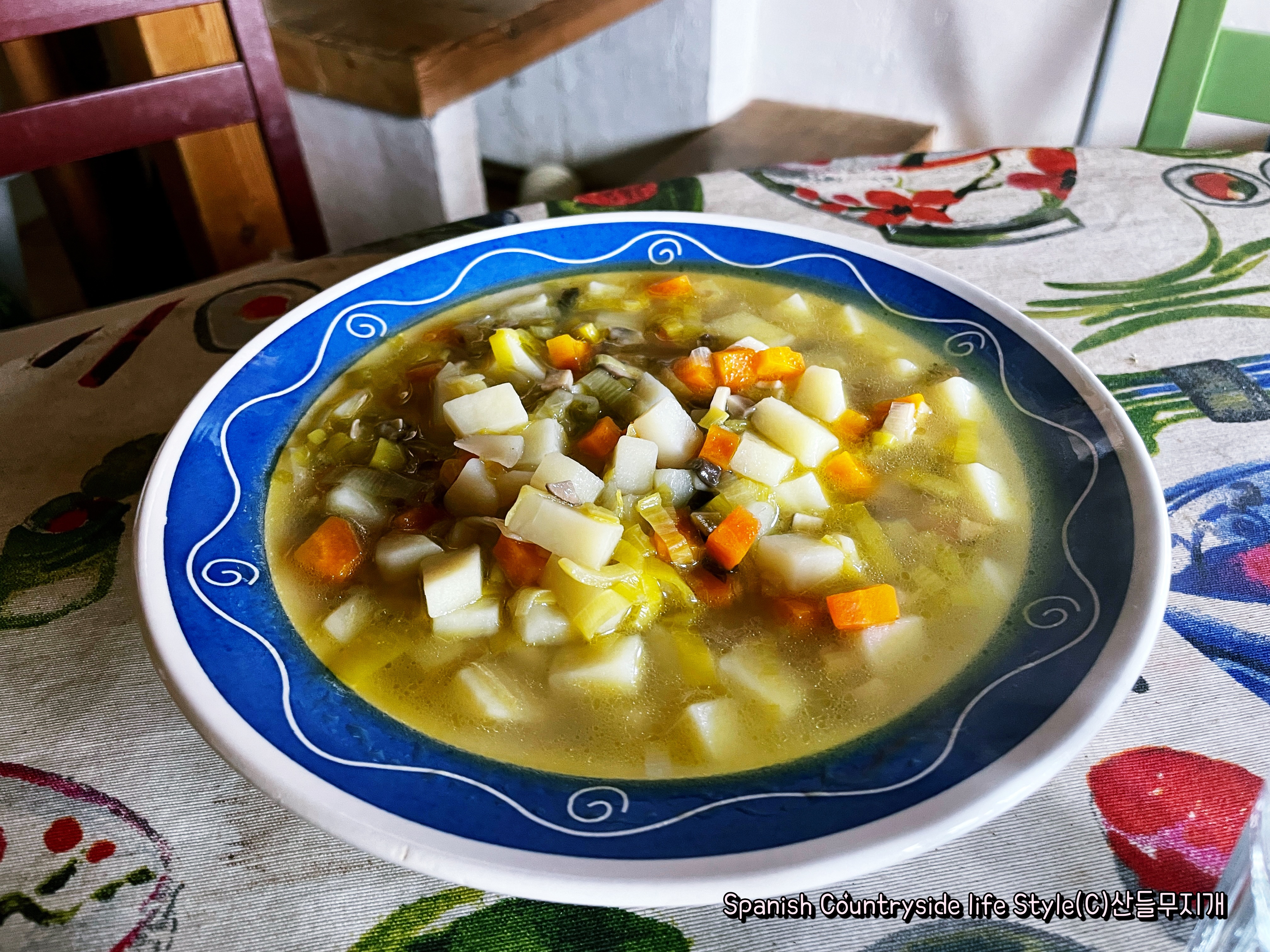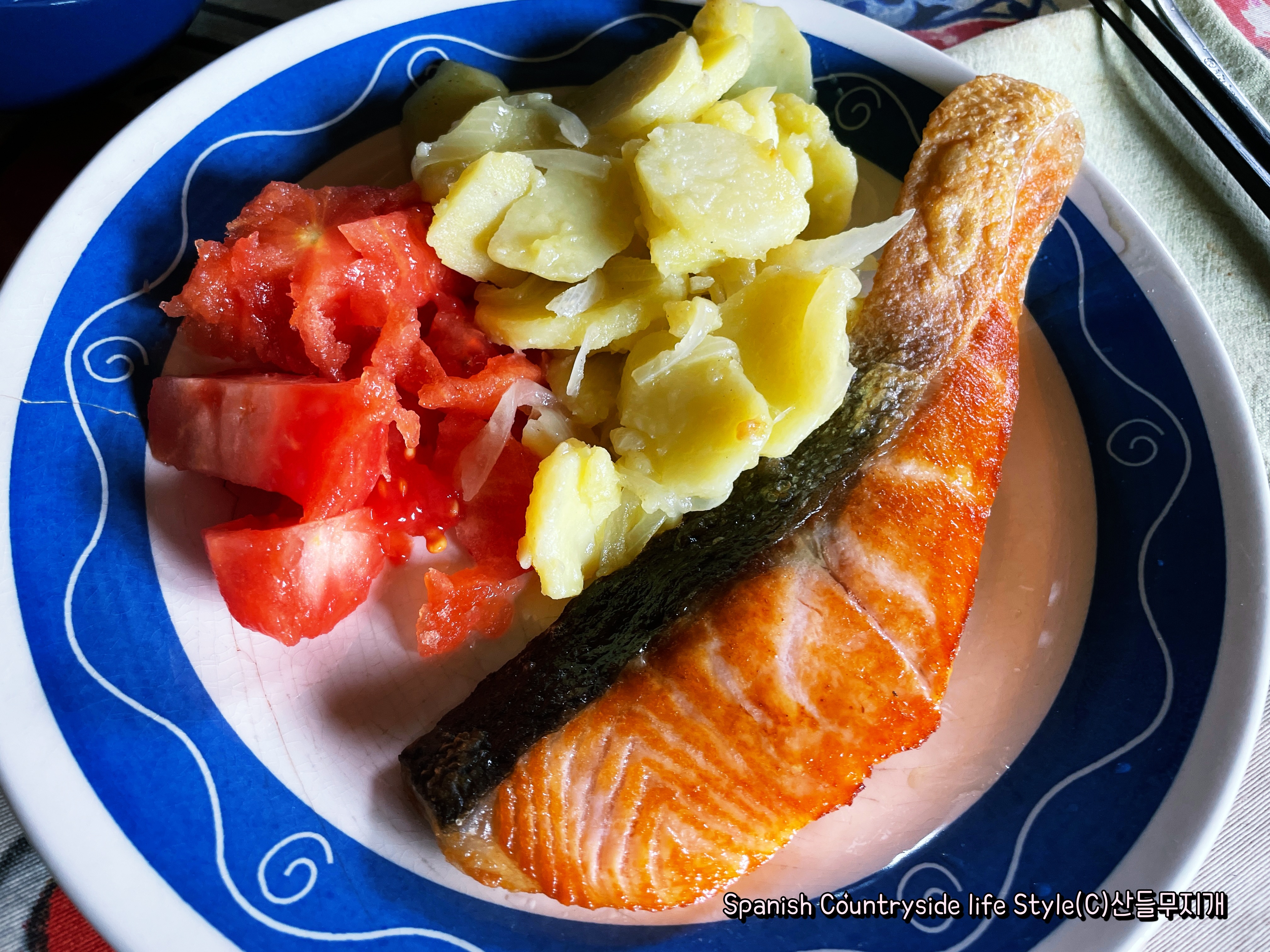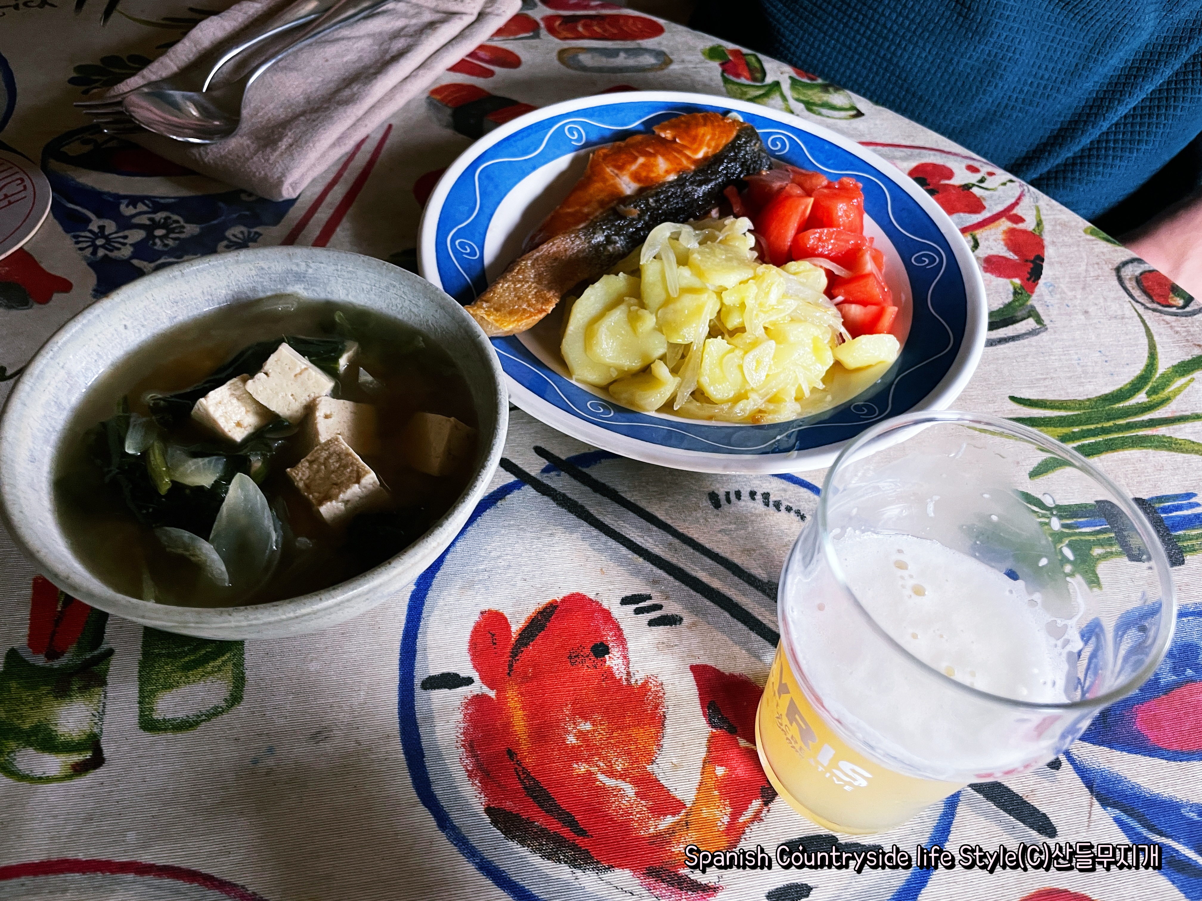 아이들이 학교에 가고 나면 점심은 우리 두 부부만 먹습니다. 해발 1,200m 스페인 고산에서는 다양한 먹거리도 없지만, 외식할 식당도 없어 직접 해 먹을 수밖에 없답니다. 마을에 식당이 몇 군데 있긴 하지만, 외식비가 생각보다 비싸고 가고 오는데 시간을 다 소비해 그렇게 권장할 만한 식사 시간대는 아니랍니다. 산똘님은 3시에 퇴근해 오기 때문에 항상 늦게 점심을 먹습니다. 물론, 스페인 점심시간은 오후 2시 정도라 저 정도 늦은 것은 조금 늦었다고 생각하셔도 된답니다. 그래서 혼자 먹는 것보다 늦어도 둘이 같이 먹는 게 좋을 것 같아 우리 가족은 언제나 늦게 점심을 먹습니다.