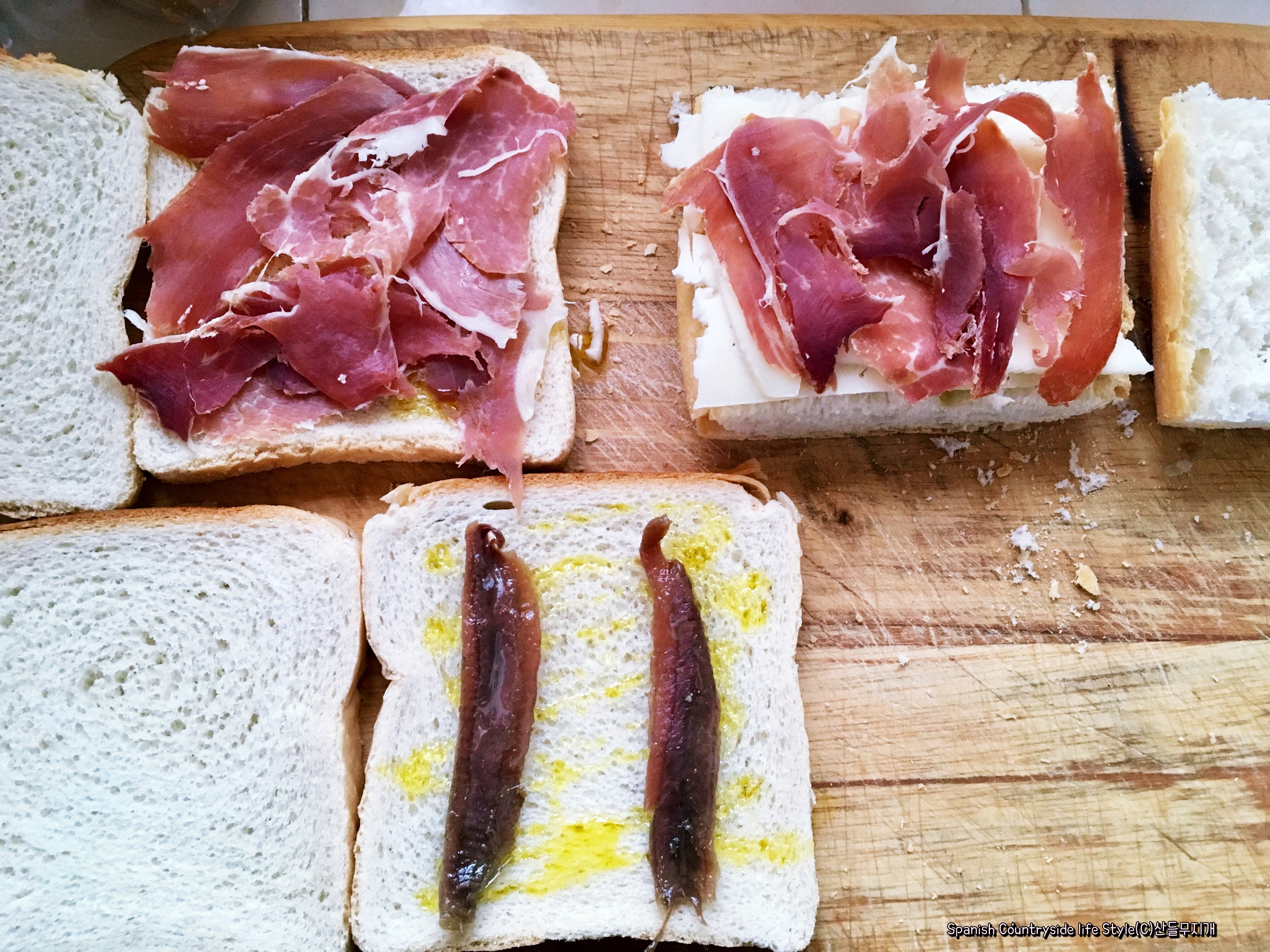 저는 웬만해서는 음식을 잘 포기하지 않는 편인데요, 스페인에서 음식을 포기하는 법을 배웠을 정도로 이 짠맛이 곤혹스럽더라고요. 좀 소금기를 빼고 먹으면 좋을 것 같은데...... 스페인은 여름이 굉장히 더워 그런지 사람들이 자연스럽게 짠맛을 즐기더라고요. 그 대표적인 생선이 안초비(Anchoa, 멸치), 모하마(Mojama, 염장한 참치), 사르디나(Sardina, 정어리), 육류로는 하몬(jamón, 스페인식 염장 생햄), 염장 안심, 유제품으로는 치즈 등......