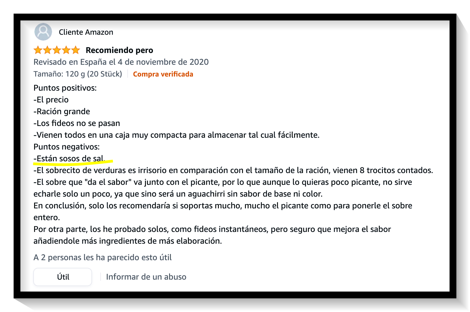 제가 제일 재미있었던 부분은 소금이 부족해 싱겁다는 부분이었습니다. 한국에서는 분명히 라면이 짜고 매우니 많이 먹지 말라고 했는데, 스페인 사람들은 이 라면 조차 소금이 부족하다고 하니...... 정말 사람들 입맛이 이렇게 다르구나, 느꼈지요. 그 와중에 돋보이는 별점은...... 음...... 매우면서도 은근히 맛있었다는 징표가 아닐까요? 별점 다섯 개라니...!!!