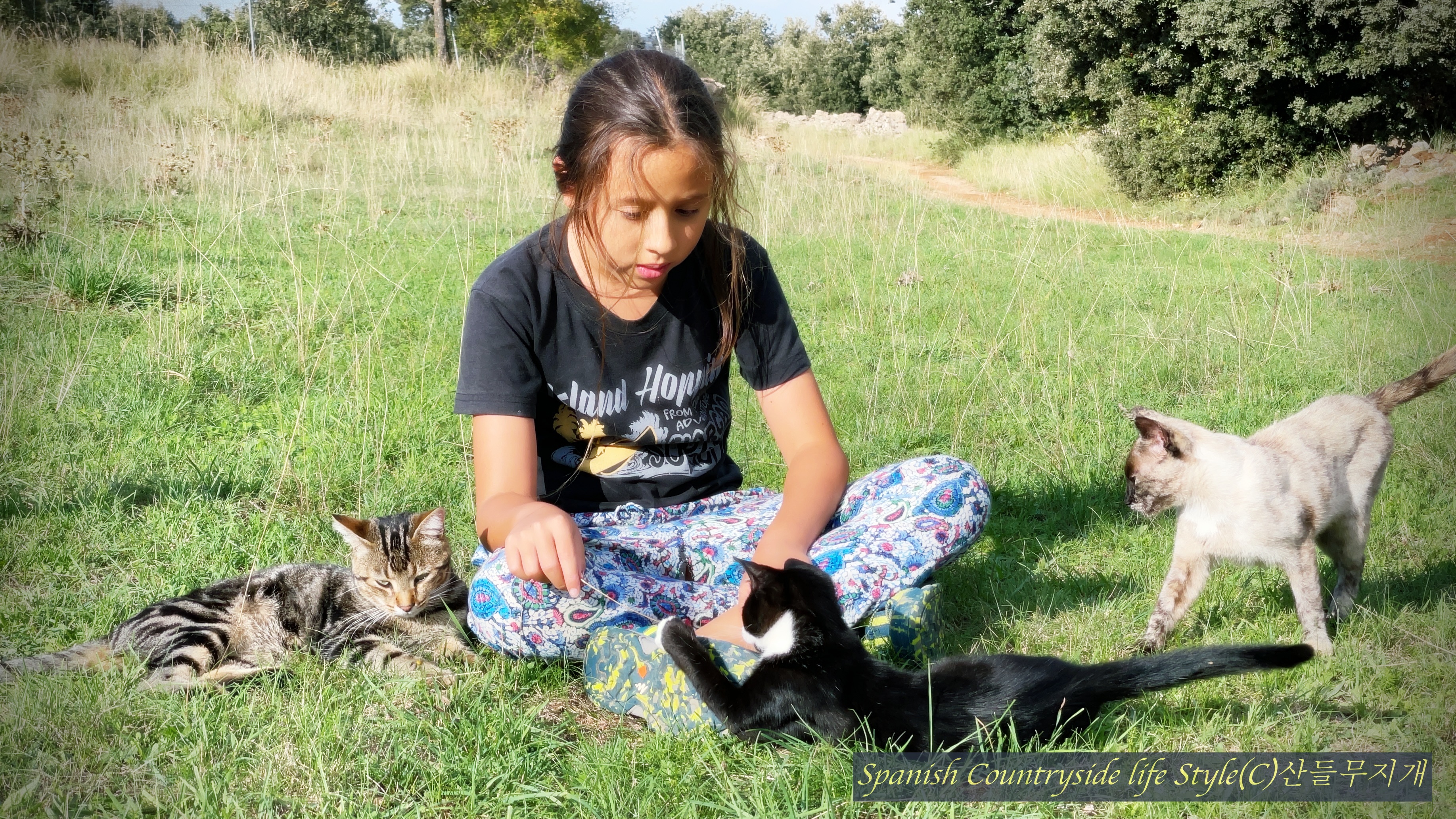 동물도 정이 있다는데 확실히 그런 것 같다. 발톱을 드러내지 않고 카악질도 하지 않는다. 가끔 양치기 개가 나타나면 누구에게든 카악질을 하면서 피하는 경우가 있다. 하지만, 우리 때문에 일부러 그런 짓은 하지 않는다.