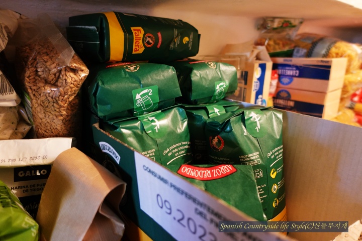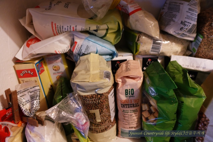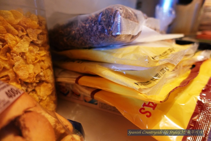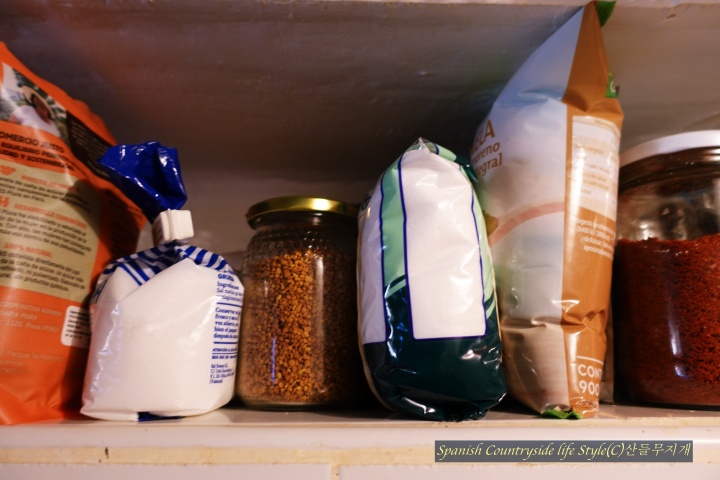 스페인서는 봉지 쌀만 팔기 때문에 이렇게 보관하고 있어요.