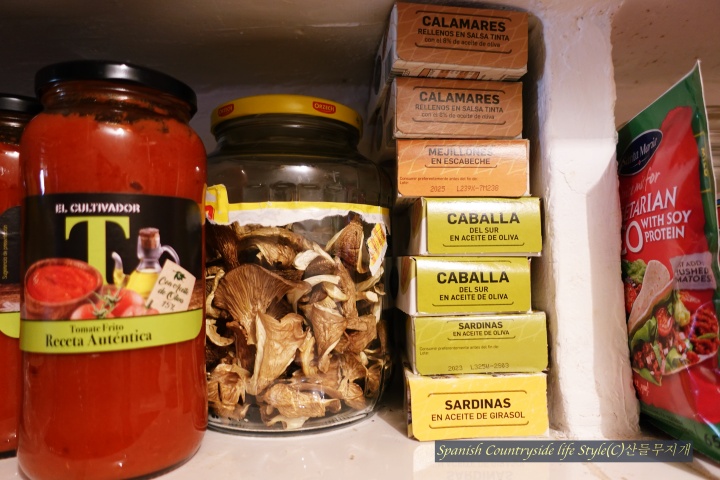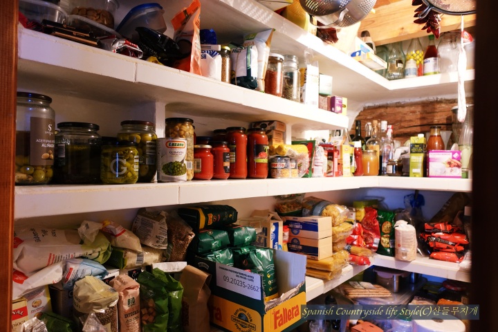 이 저장실은 그때그때 구입하고, 저장해 놓은 식품으로 차 있습니다. 시국이 불안할 때마다 이곳은 음식으로 채워지는데요, 요즘은 코로나 사태가 어느 정도 안정돼 가는 추세라 마음 놓고 많은 걸 사놓지 않았답니다. 그런데 전쟁 때문에 또 음식으로 채워질 듯합니다. 😭