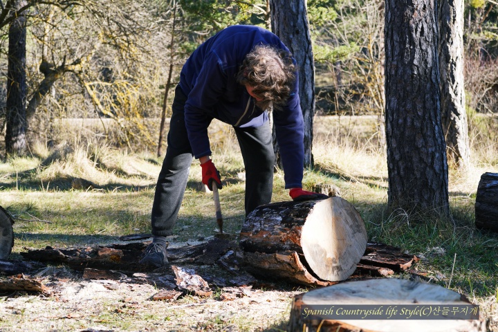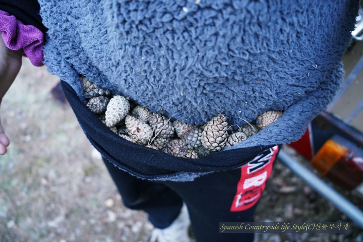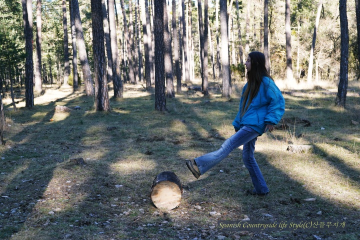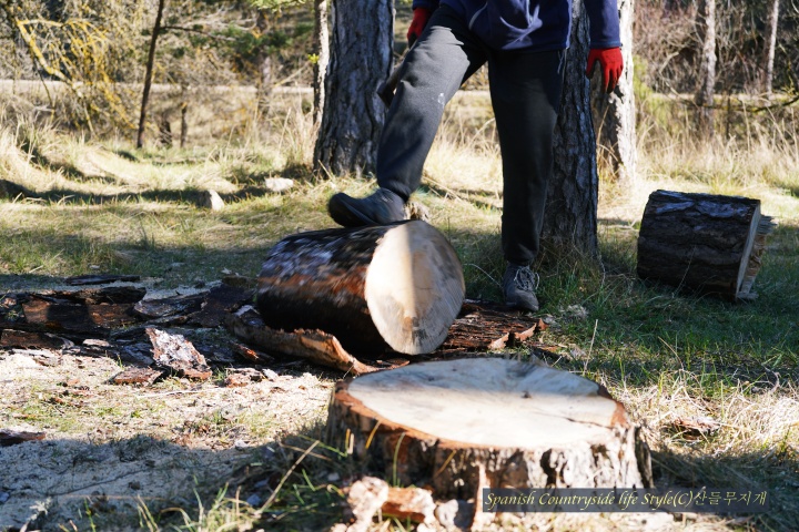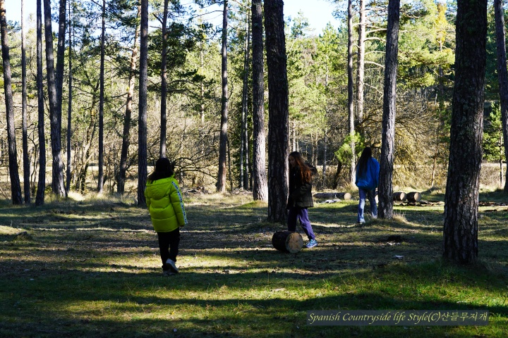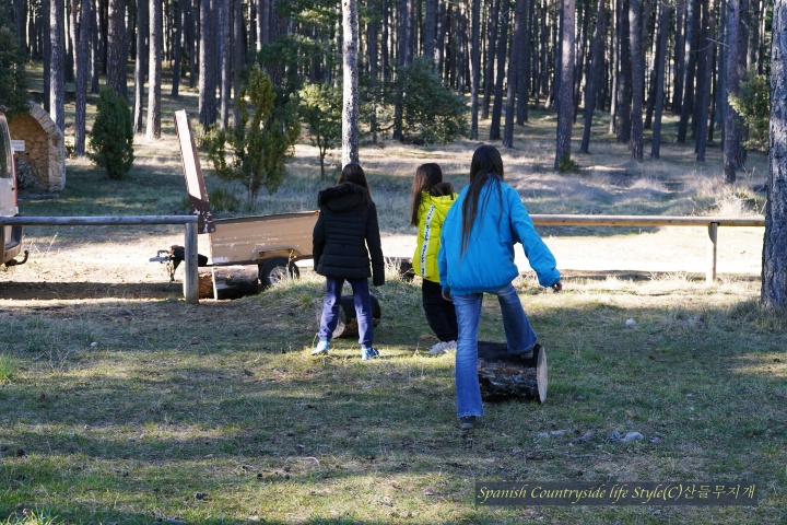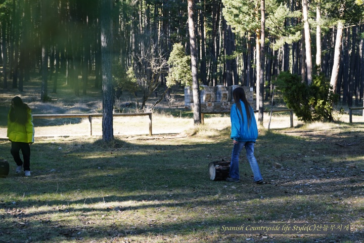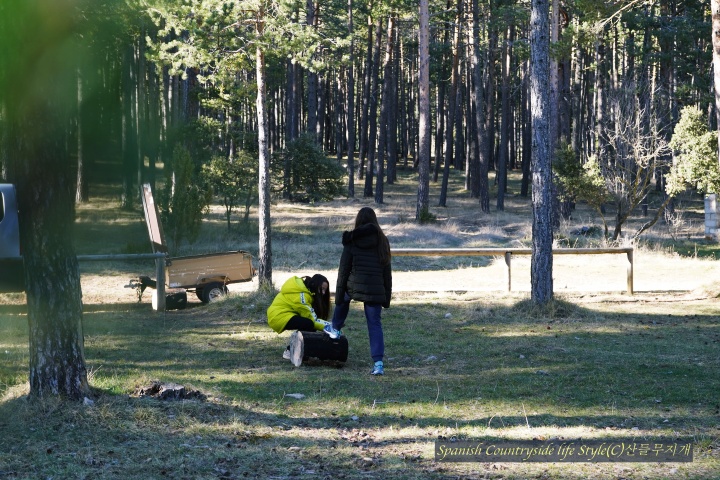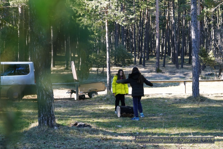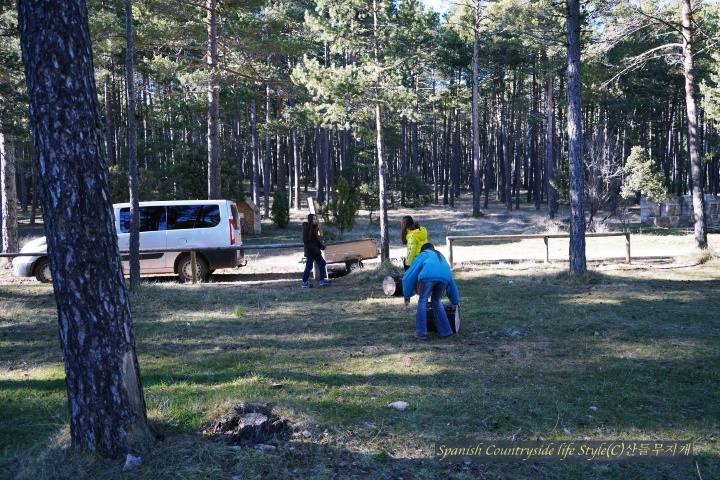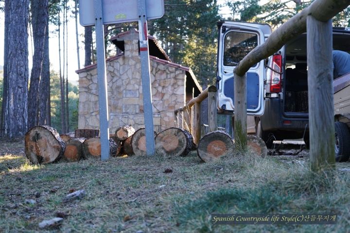 해발 1,200m 스페인 고산 [참나무집] 가족은 유럽 적송 소나무 숲에 땔감을 구하러 갔습니다. 자연공원에서 일하고 있는 남편 덕분에 언제, 어디에 땔감이 있는지 알 수 있어요. 마침 주말이라 쉬는 아이들 잘~ 달래서 공원 관리자분들이 잘라 놓은 나무를 가지러 갔답니다. 마을 사람 누구나 땔감을 가져갈 수 있으니 우리도 이번 주말에 땔감을 가지러 갔습니다.