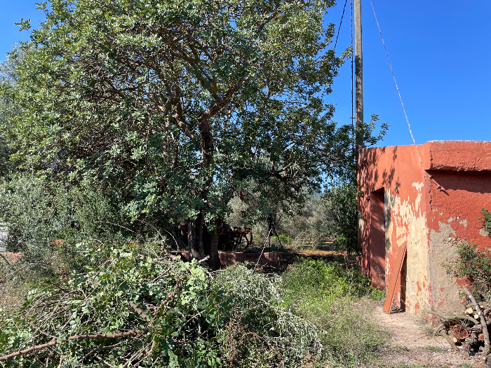 집 앞에 좀 큰 캐럽나무도 수북하게 땅을 덮고 있어서 이곳도 깨끗하게 가지치기해줬습니다. 가지치기하고 나니, 훤하게 보이는 야외 테이블~!!! 처음에는 깜짝 놀랐어요, 너무 예뻐서...! 테이블 위 옛날 타일이 붙어 있었는데 그게 정말 좋았어요. 나중에 좀 정돈되고 정리되면 여기 테이블에서 많은 일을 할 수 있겠구나, 신났습니다.