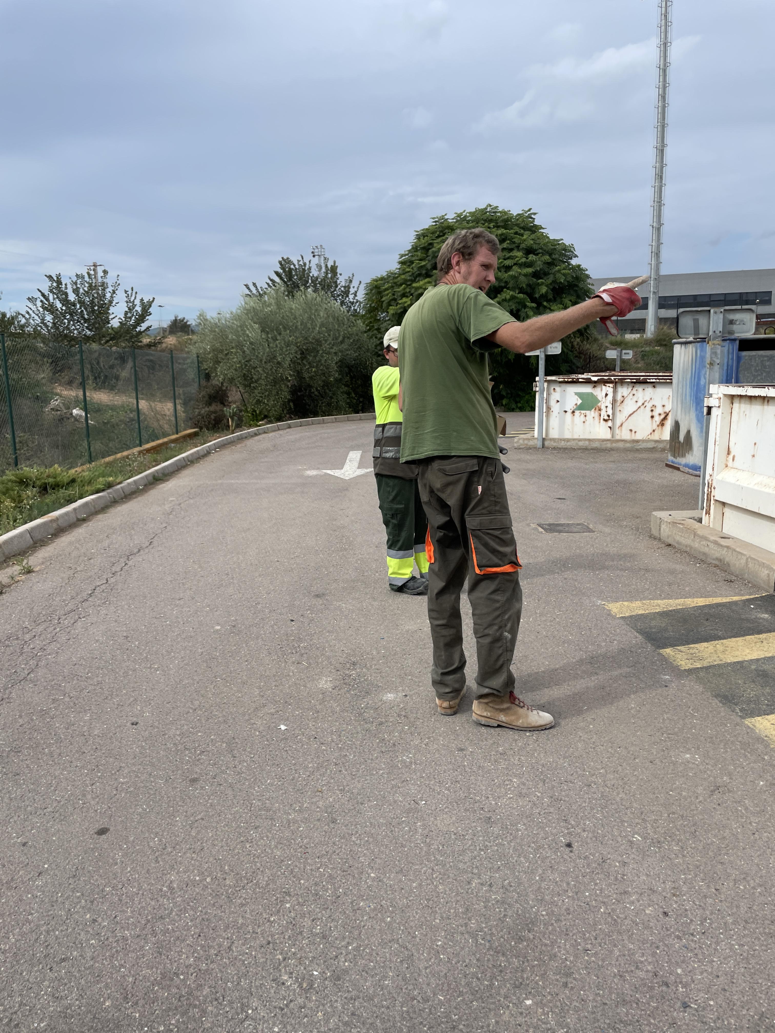 쓰레기를 실은 차가 도착하면, 운영 요원이 나와 쓰레기 종류를 확인하고 컨테이너 안내를 합니다. 어느 컨테이너에 버려야 할지 일일이 다 가르쳐주고, 확인합니다.