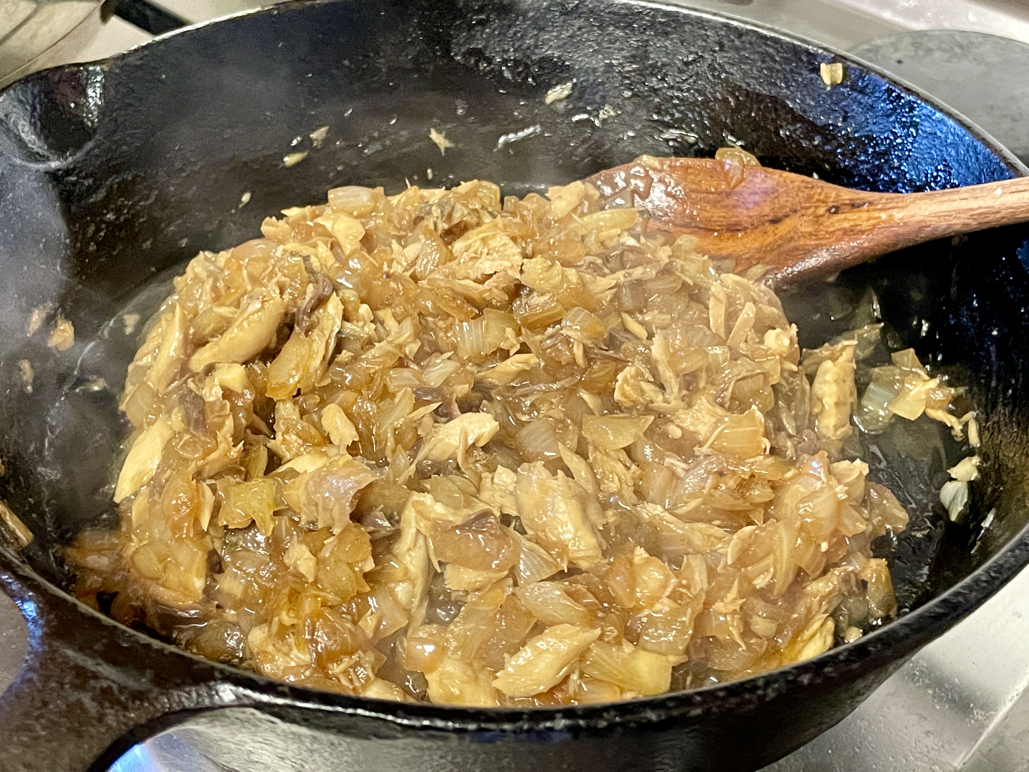 양파는 센 불에 볶지 말고, 약한 불에서 볶다가 뚜껑을 덮어 푹 익혀줍니다. 아이들이 바삭거리는 채소 질감을 싫어하거든요. 그래서 입에 넣었을 때 부드럽게 넘어갈 수 있는 수준으로 잘 으깨져야만 합니다. 😉