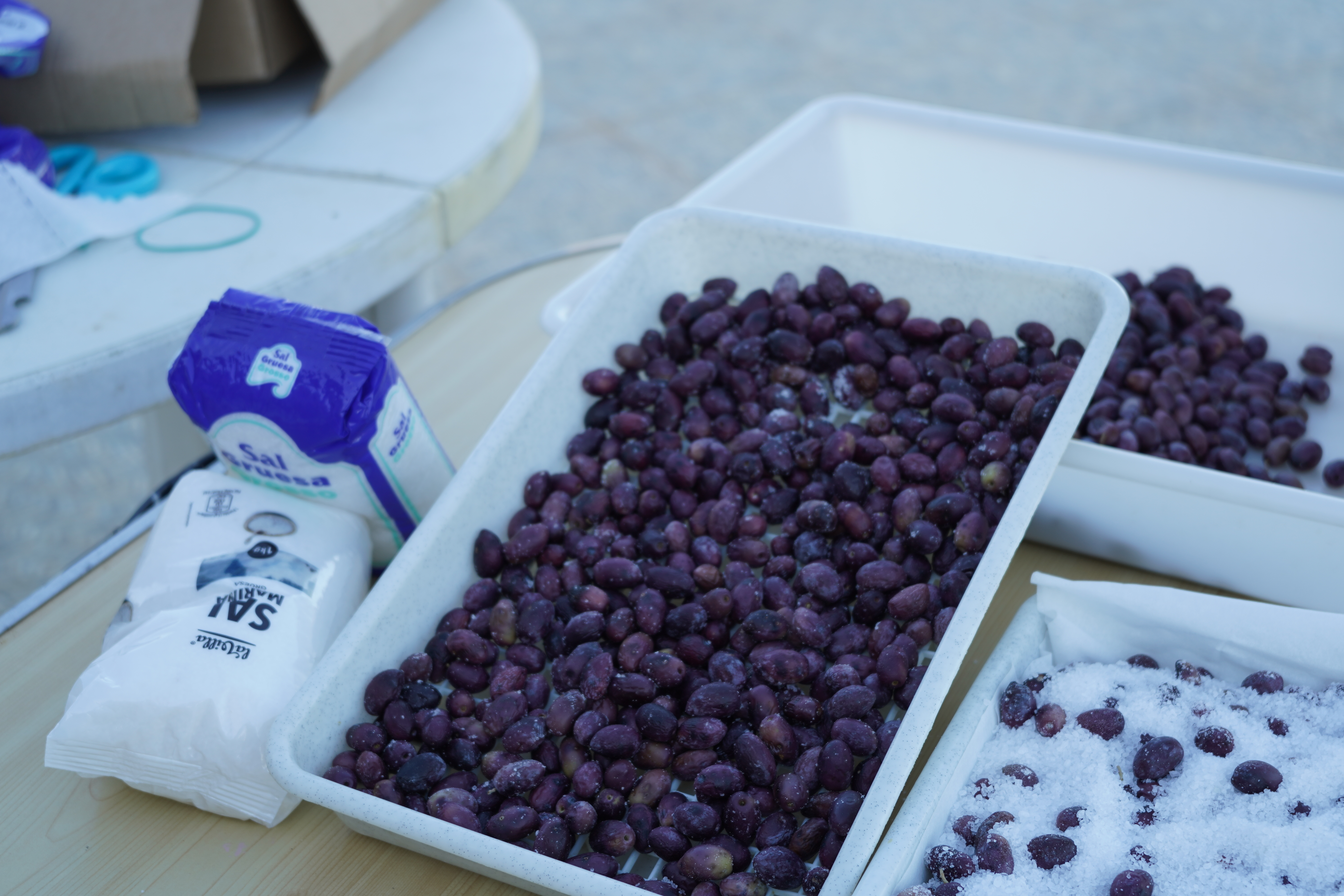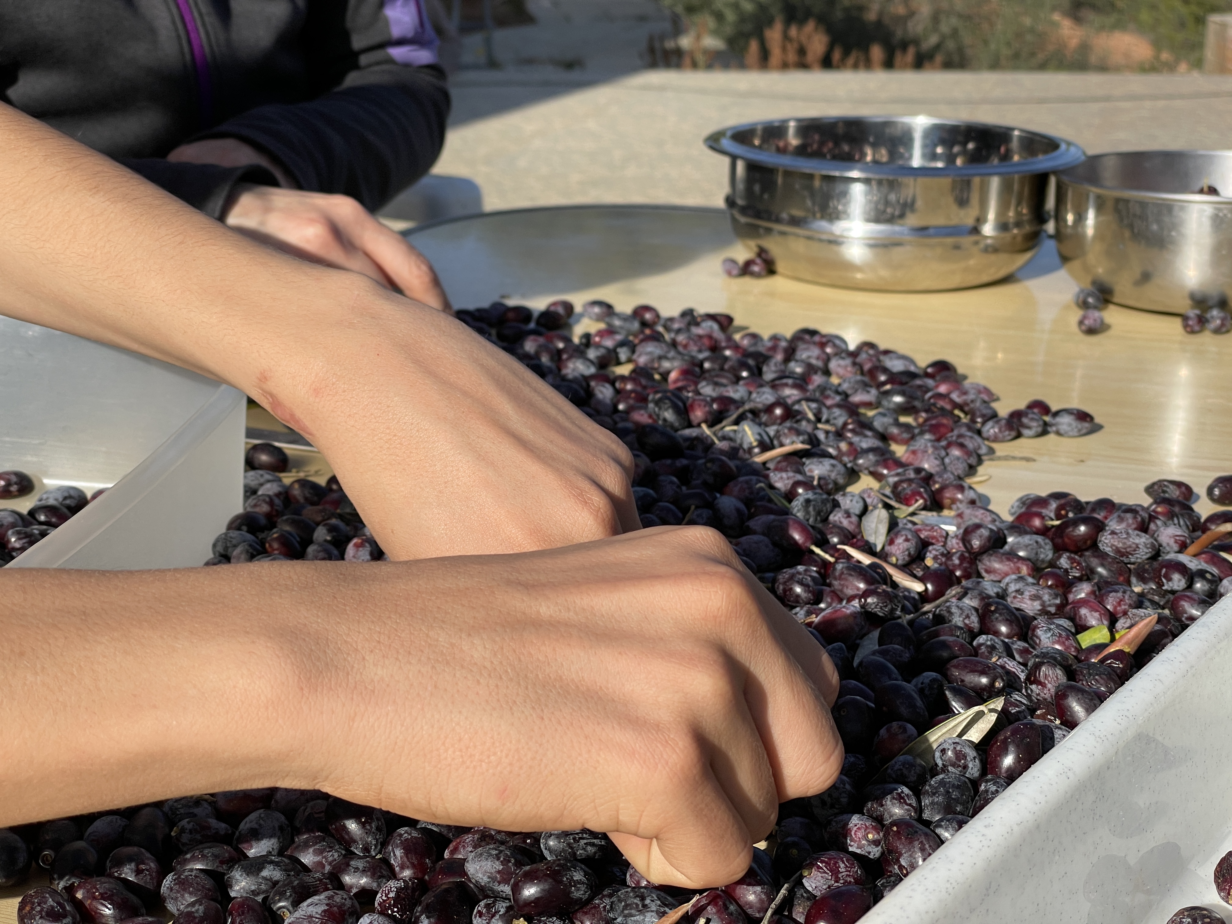 위의 사진처럼 수확한 올리브를 잘 골라냅니다. 농약을 치지 않아서 벌레 먹은 열매가 많아 이렇게 일일이 손으로 골랐어요.