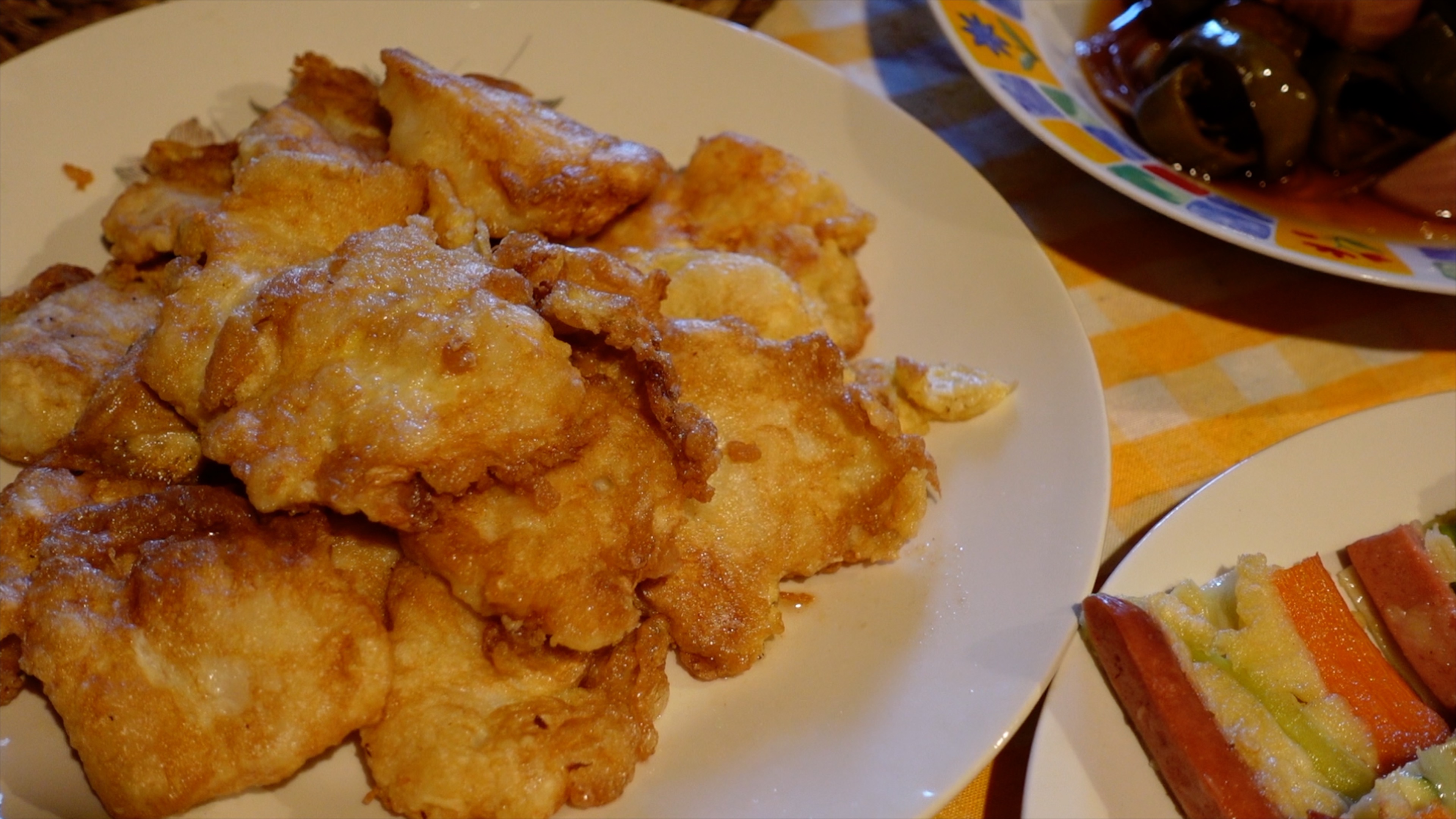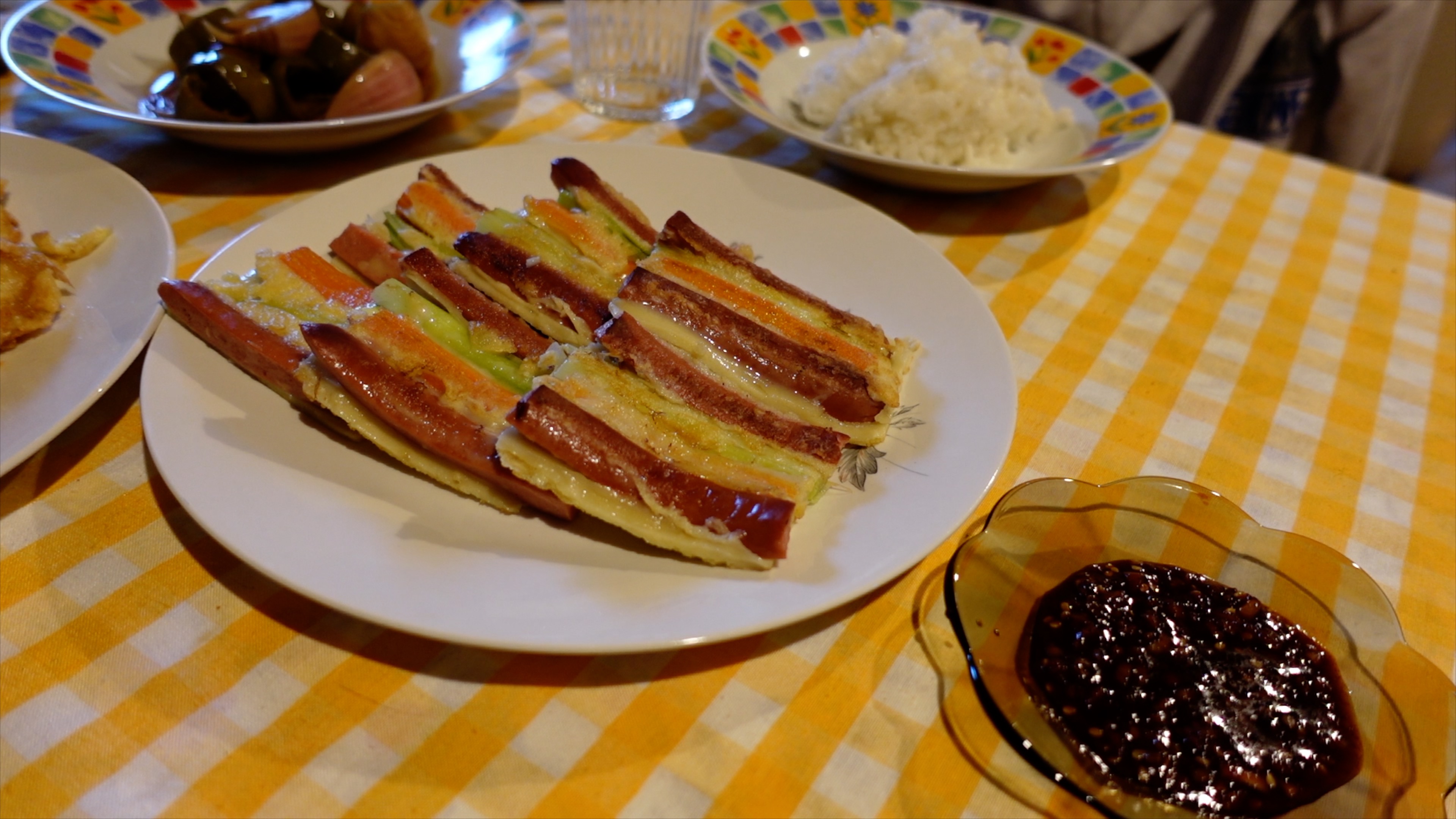 그래서 제가 한 요리는 채소튀김, 한국 장아찌, 생선전, 꼬치전을 했어요. 한국처럼 풍성하지는 않지만, 그래도 상징적인 의미로 이렇게 식탁에 올렸는데, 다들 아주 좋아했습니다. 특히 남편은 생선전이 아주 부드럽고 풍미가 좋다며 좋아했어요. 함께 찍어먹는 양념간장도 모두 좋아하는 소스이고요. 산드라는 채소튀김을 쉴 새 없이 먹었고, 쌍둥이는 그래도 소시지가 들어간 꼬치전을 잘 먹더라고요. 이제 자연에 감사하며 풍요를 기원했던 한국 조상들의 추석을 매해 기억하게 되겠지요?