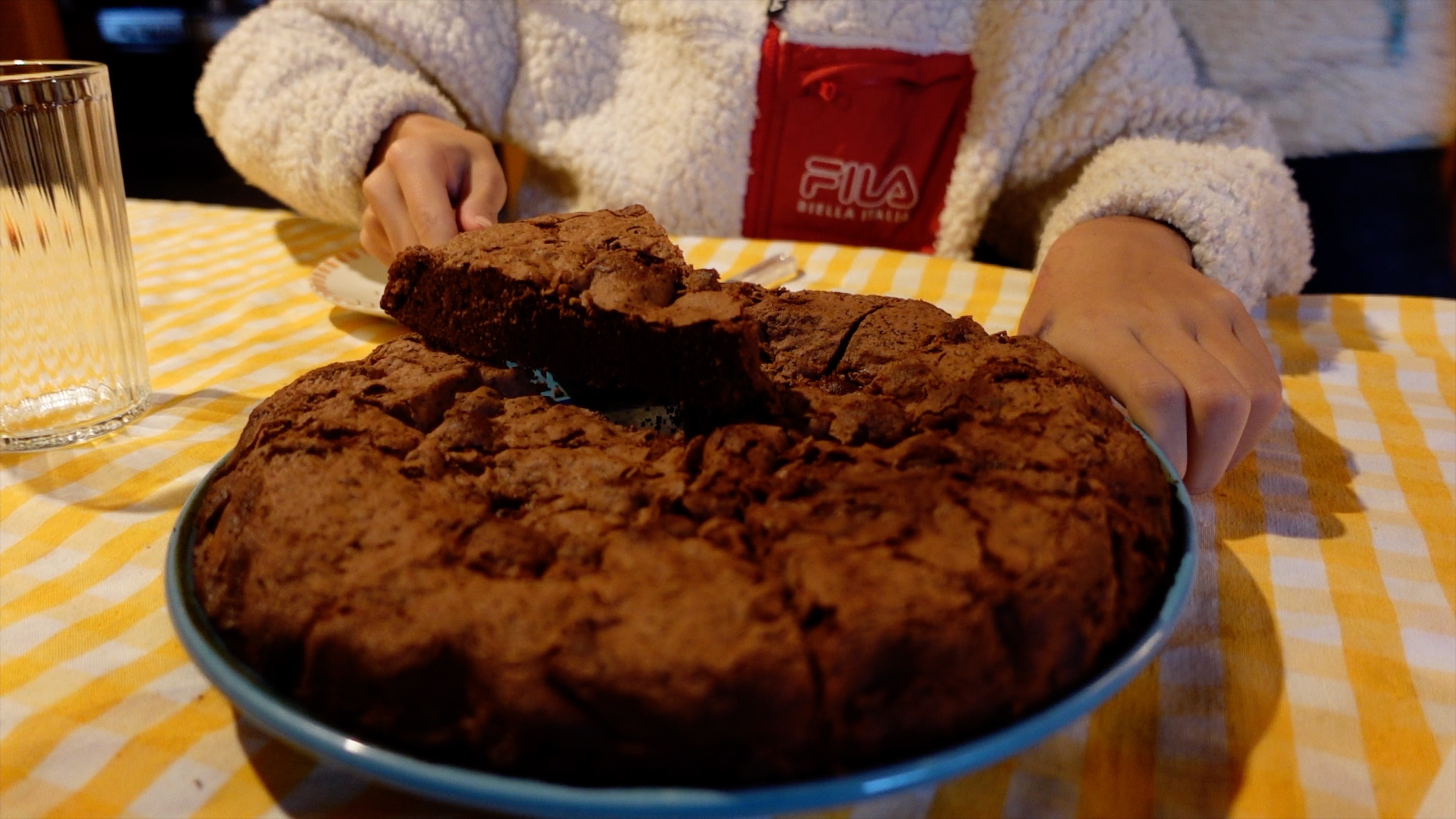 짜잔~! 완성된 케이크입니다. 브라우닝 같기도 하고, 촉촉한 큰 쿠키 같기도 한 케이크! 미처 생각 못했는데, 이 위에 녹인 초콜릿 바르고 각종 데코레이션 편 아몬드나 초콜릿칩 같은 것을 올리면 훨씬 더 멋진 케이크가 될 것 같습니다. 다음에는 꼭 데코레이션을 해서 케이크를 완성해 봐야겠습니다!