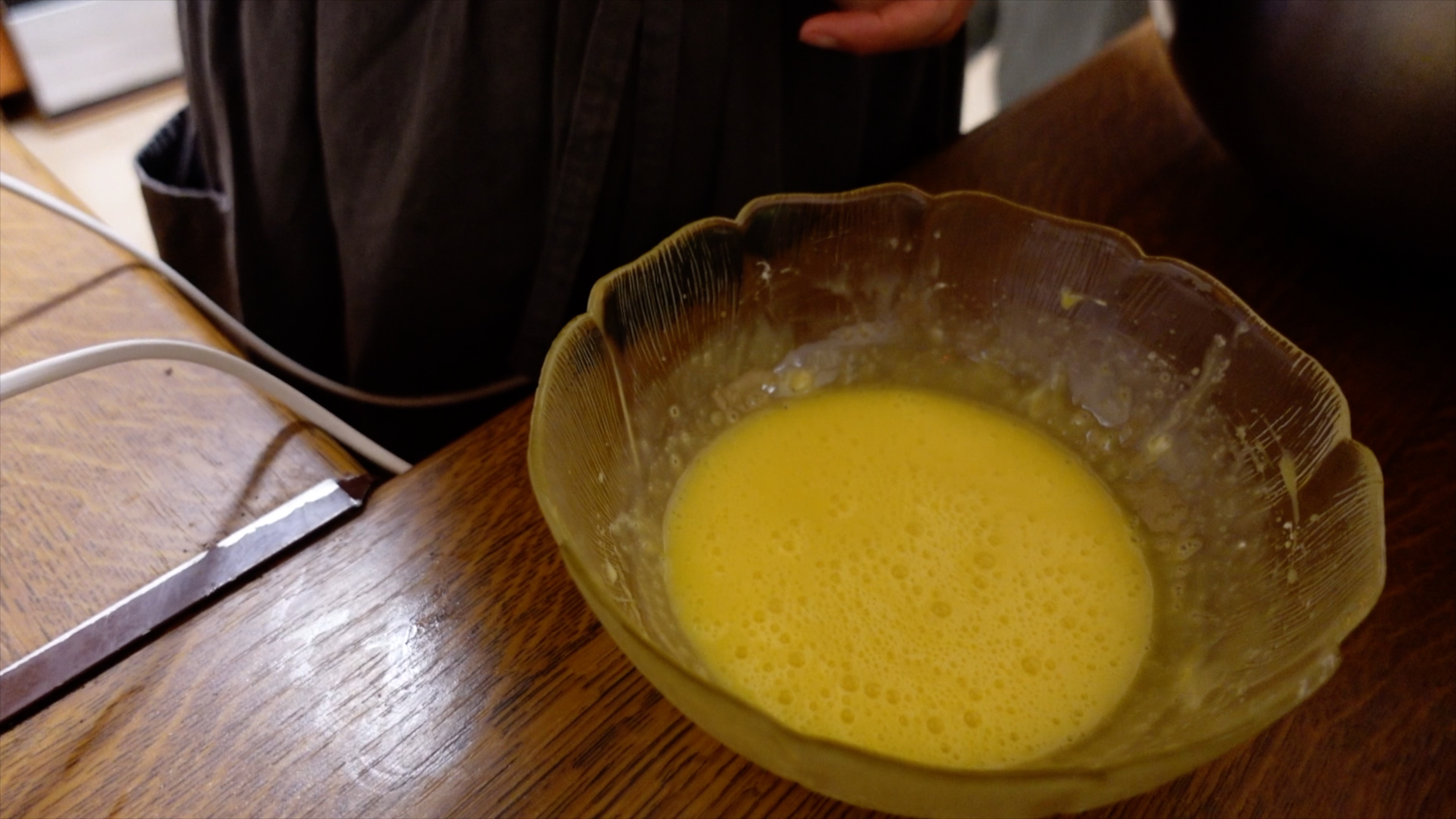 노른자도 휘핑기로 간단하게 풀어줍니다. 흰자처럼 오래 휘핑할 필요는 없답니다.