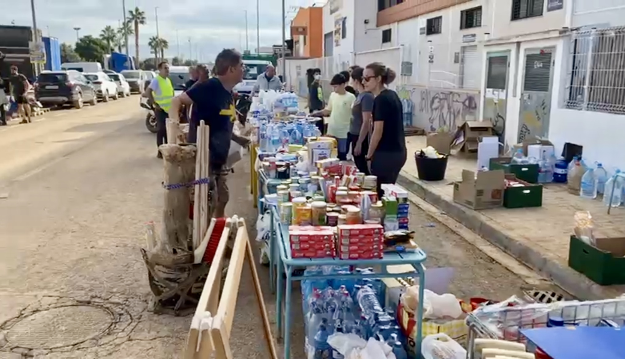 다리가 무너져 차로 들어가지 못하고, 게다가 진흙탕이 덮쳐 상황이 이만저만이 아니었죠. 사람들은 미처 대비하지 못해 식료품과 물도 없었습니다. 수돗물이 끊겨 물을 구할 수 없어 밖으로 나가 물을 구하는 사람들이 넘쳐났다고 합니다. 그때 어떤 사람들은 식량을 구하기 위해 가게를 약탈하기도 했지요. (한국에서는 마치 모든 사람들이 약탈하는 듯한 소식처럼 미디어를 통해 전해졌는데, 그렇지는 않습니다. 소수의 몇몇(50명, 경찰에 다 잡혀 들어 감)이 물과 식량을 구하기 위해 채소 가게나 식료품 마트에서 음식을 약탈했다고 합니다. 그 후 정부에서 통제하여 자원봉사자와 시민들의 도움으로 정상화됐지만, 그전까지는 다리도 끊기고, 가게도 다 물에 잠기고, 수도도 끊겼으니... 얼마나 답답했을까요? 큰 도시의 수십 만 명이 버틸 물과 식량은 그때 없었다지요.) 지금은 발렌시아 북부 시민들이 걸어서 물과 음식을 들고 피해를 본 도시들도 들어가 도움을 줍니다. 수천 명의 자원봉사자들이 거리를 청소하고 식량을 조달하지요. 마침 스페인은 국경일 휴가가 겹쳐 사람들이 거리로 나와 피해자를 도울 수 있었지요.