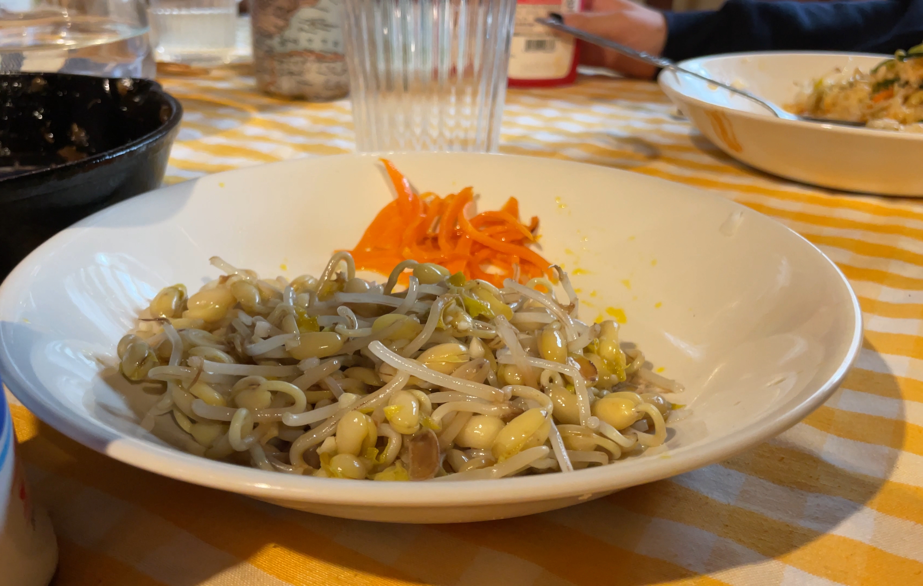 비빔밥 먹으면서도 계속 반찬으로 이 콩나물 집어먹었다는 사실, 진짜 너무 맛있었어요! 😍 이렇게 생활의 발견을 하면서 하루하루 사는 게 소꿉장난처럼 재미있네요.