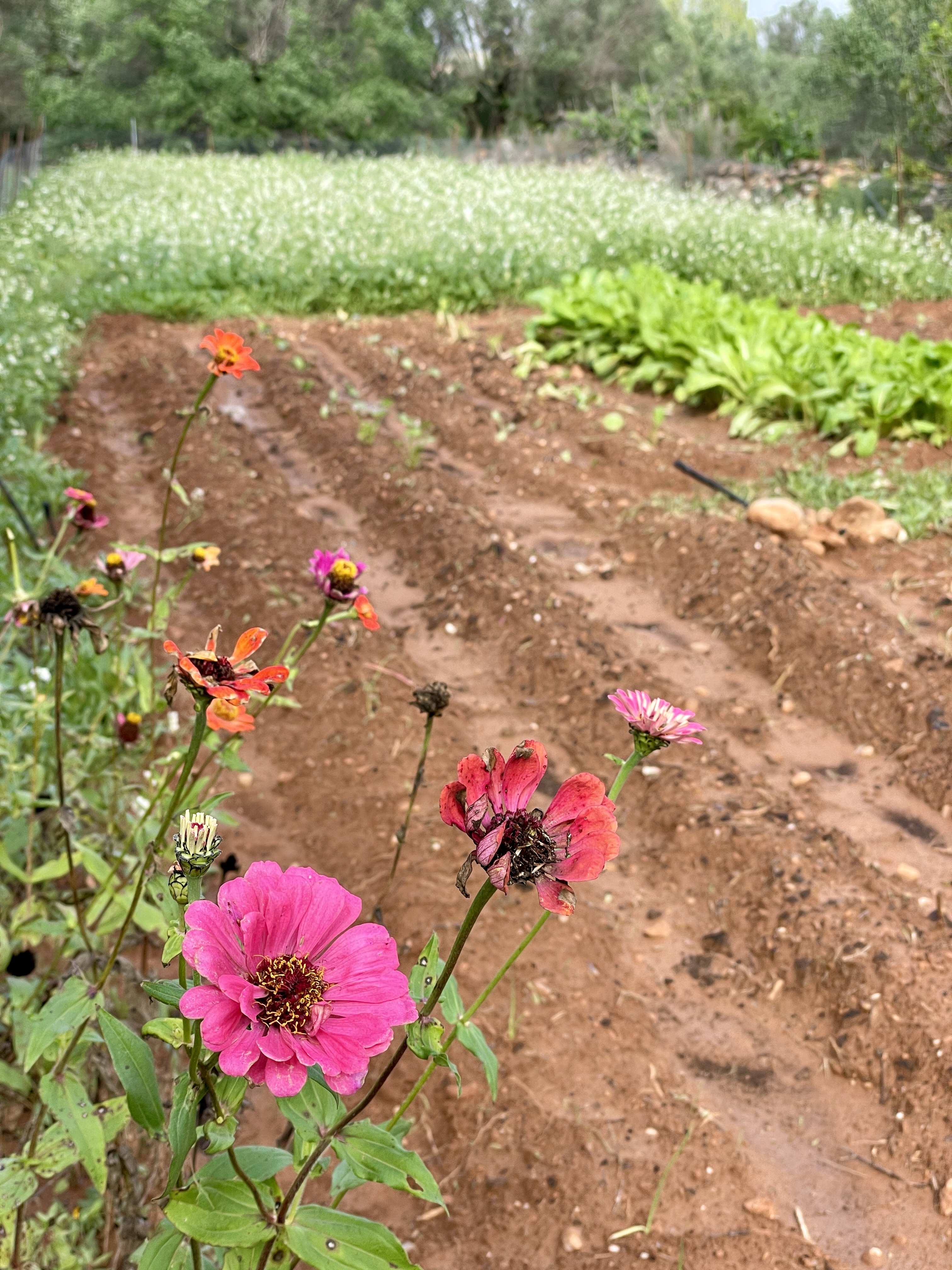 저 멀리에는 야생 무꽃이 하얗게 눈부신 아름다움을 보여줍니다. 이 야생 무는 연한 잎을 따서 삶아서 무쳐 먹으면 또 맛있더라고요. 루꼴라보다 더 강하고, 쓴맛을 자랑하는데 삶으면 시금치처럼 부드러운 맛을 보여주더라고요. 야생무인 관계로 뿌리는 도라지처럼 가늘고 단단합니다. 무라고 엄청나게 좋아했는데 캐보니 이건 완전 도라지보다 얇고 볼품없어 먹지는 못하겠더라고요.