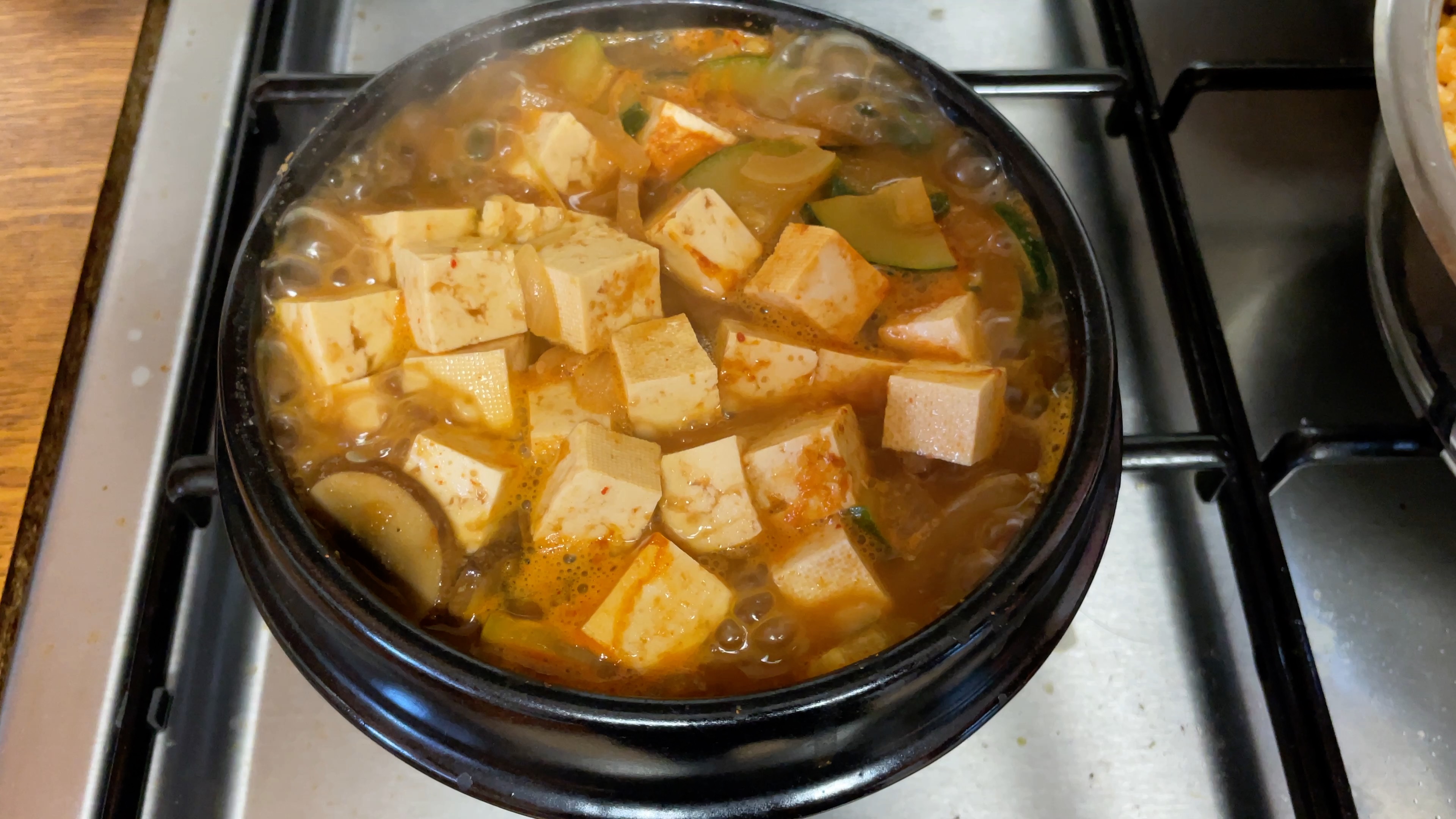 맛있는 된장찌개도 잊지 않았지요! 사진으로는 배추가 보이지 않는데, 배추가 들었습니다. 호박과 배추, 파, 버섯 그리고 두부 잔뜩... 넣은 된장국! 정말 시원하고 맛있어요. 이 추운 계절에 딱 좋은 찌개입니다!