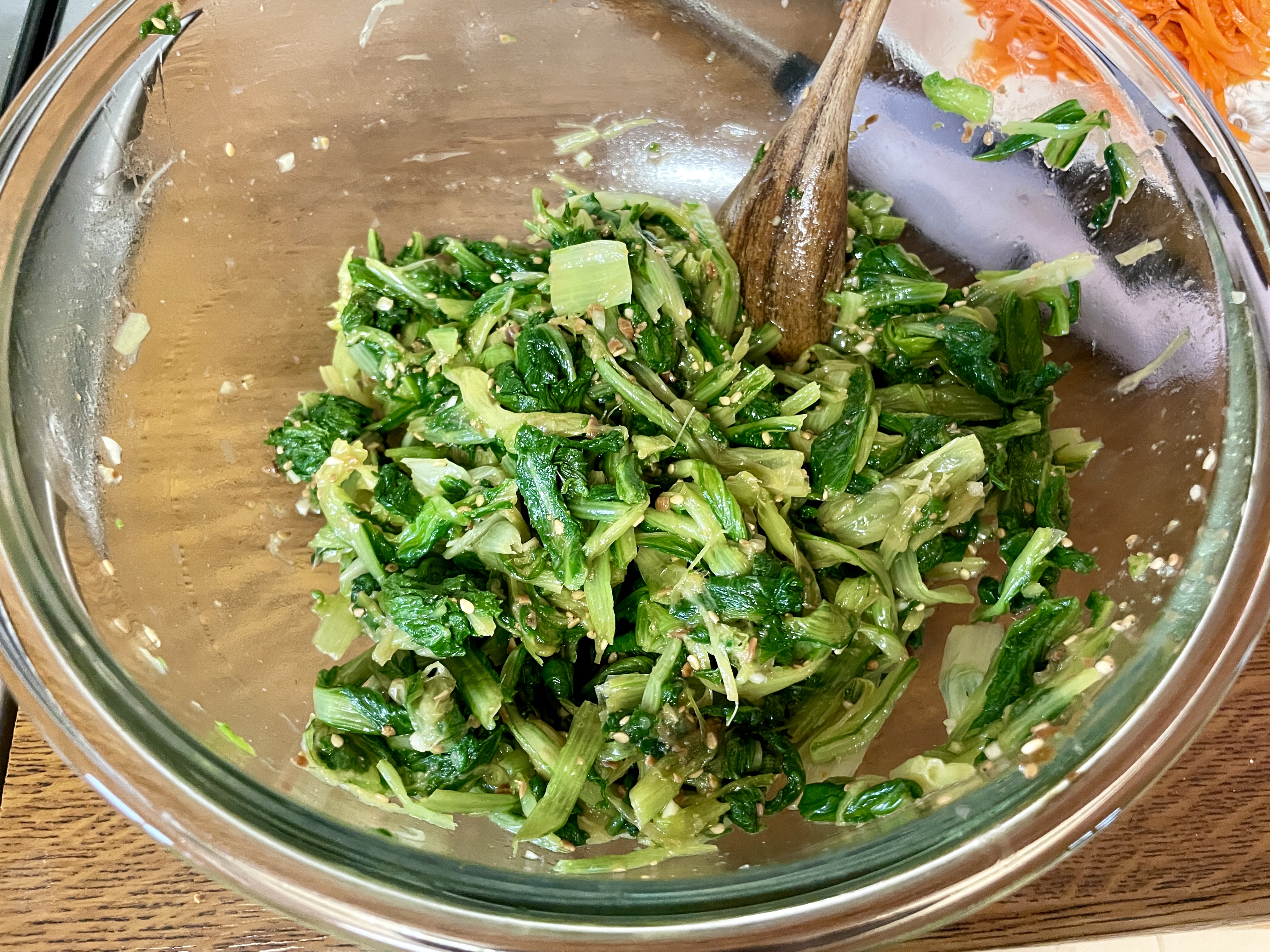 연한 배추 수확해서 이렇게 삶아서 나물로도 무쳐먹습니다. 배추나물무침!!! 아이고, 입 고인다! 😋