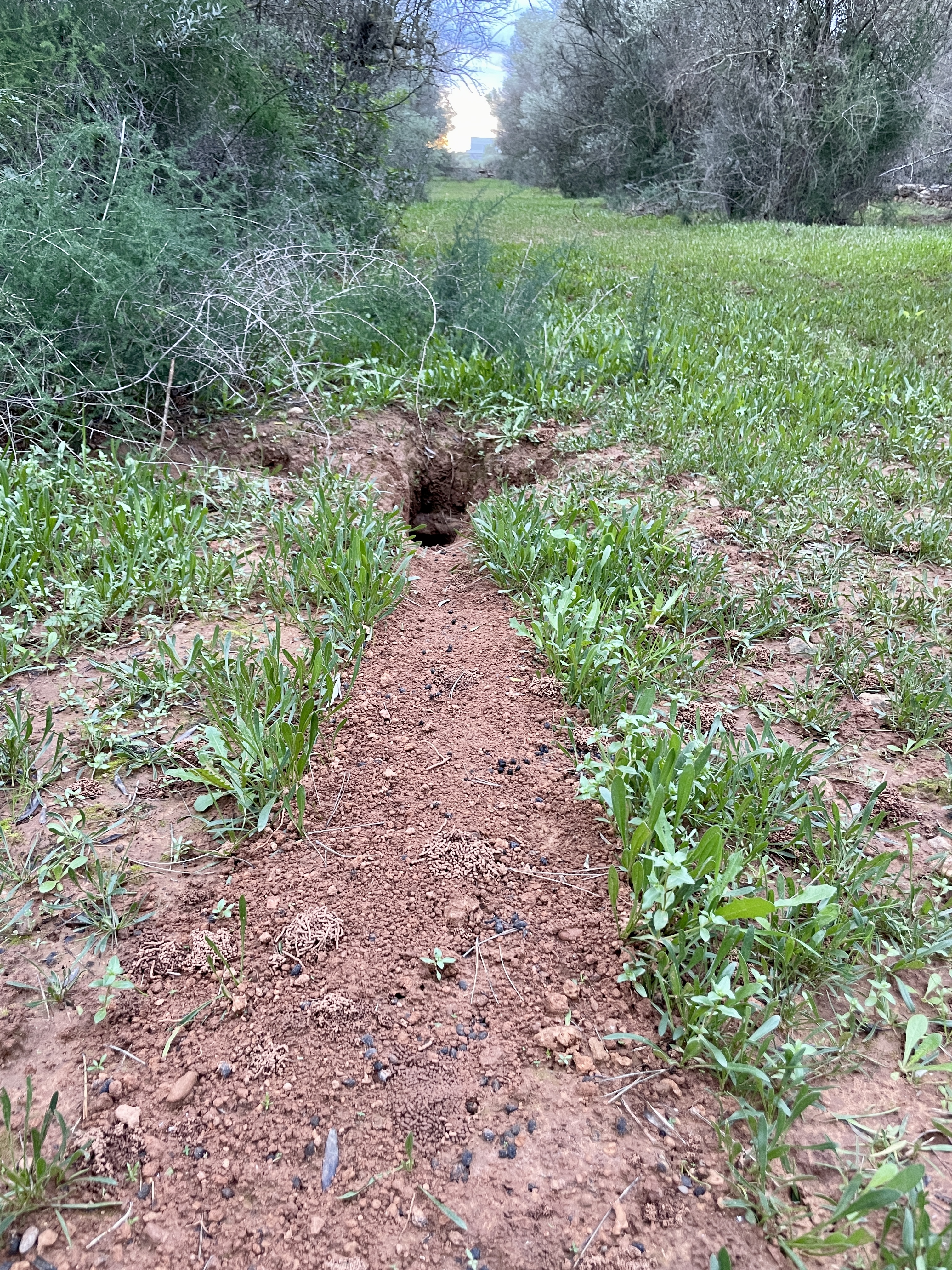 우리의 [산들랜드]를 산책하다 보면 토끼굴이 가끔 보입니다. 진짜 스페인이 토끼의 땅이라는 어원(페니키아어로 '토끼'를 뜻하는 '스팬'(span)에서 스페인이라는 명칭이 나왔다는 설)에서 지어진 것을 증명이라도 하려고 토끼가 이곳저곳에서 튀어나옵니다. 지중해 연안의 우리 집 올리브농장에는 토끼가 정말 많습니다. 그런데 지나가다 보면 토끼굴이 다양한 형태로 보이곤 합니다. 이 작은 구멍들은 숨겨놓은 비밀의 문처럼 나를 끌어당기곤 합니다. 무엇이 그 안에 있을까? 토끼가 뛰어들어갔을 것 같은 그 굴은 어두웠고, 입구 주변엔 부드러운 흙이 가득 쌓여 있습니다.
