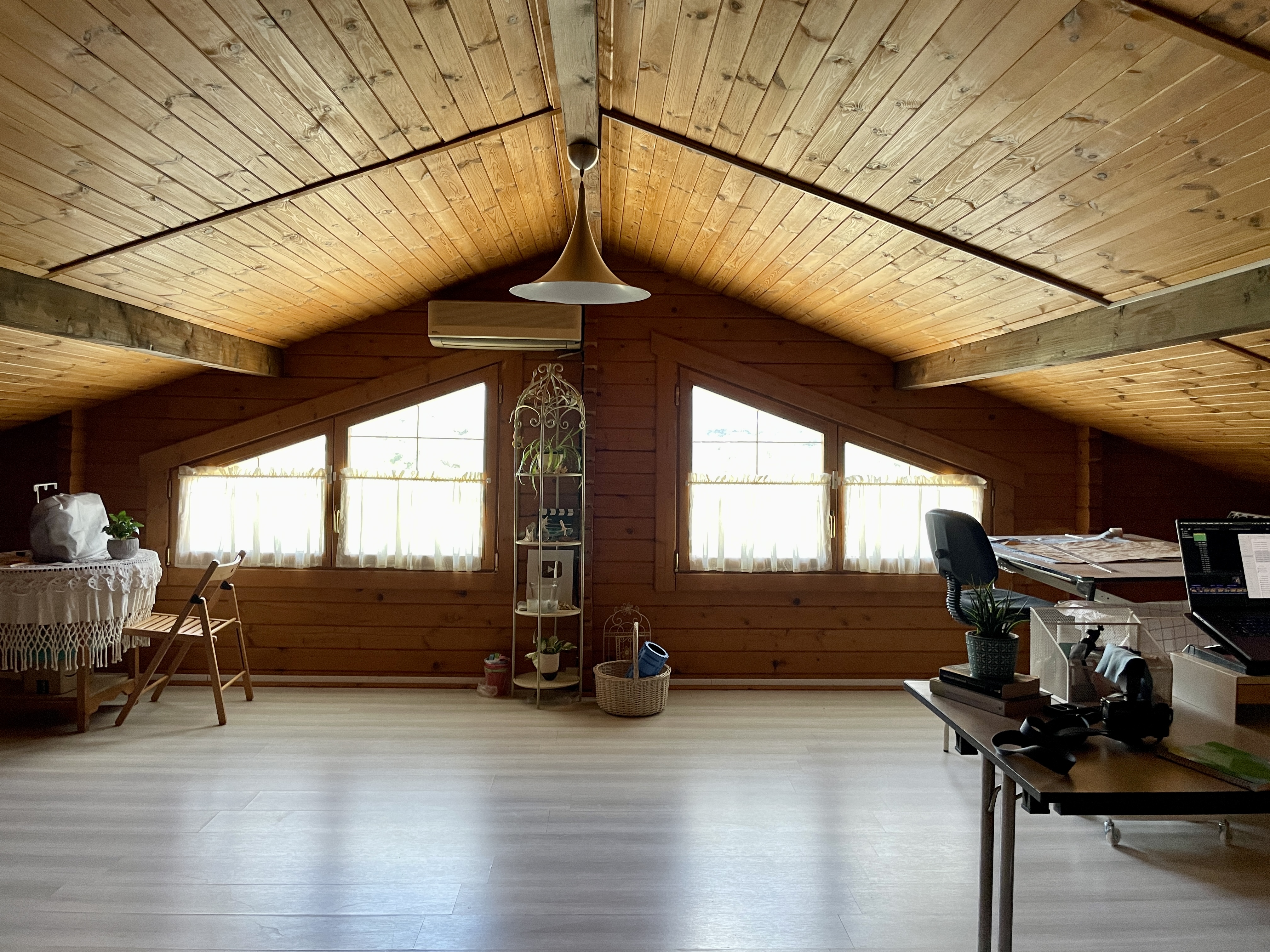 우리 집 다락방은 내가 가장 좋아하는 공간입니다. 처음 이 집에 이사 왔을 때는 단순히 짐을 쌓아두는 창고로만 쓰일 줄 알았던 곳이, 지금은 나만의 아늑한 쉼터이자 창작의 공간이 되었지요. 나무 계단을 올라가 뻥 뚫린 다락방으로 들어가면 속이 뚫리는 듯 좋습니다. 또 나를 반기는 건 햇살이 가득 들어오는 삼각형의 창문... 이곳에 있으면, 세상의 소음이 잦아들고 오롯이 나 자신에게 집중할 수 있습니다.