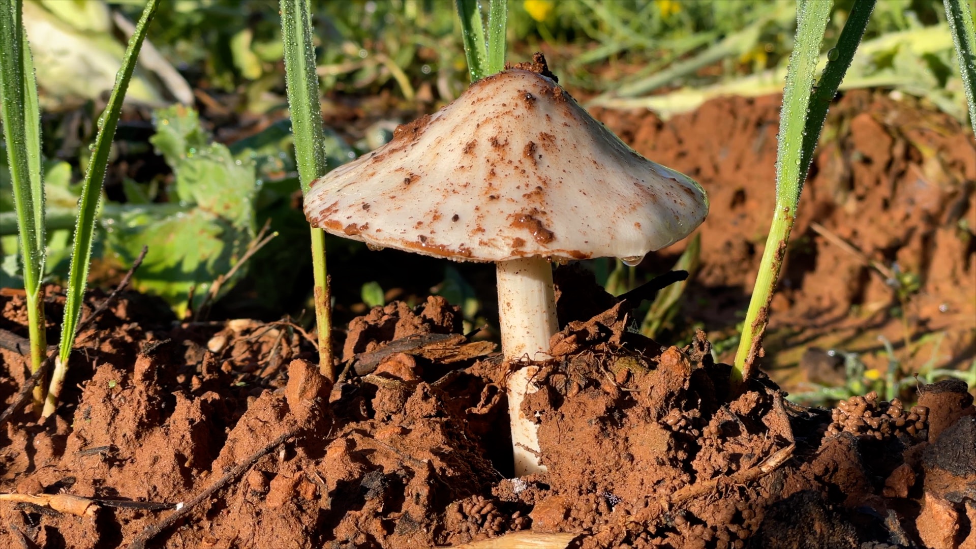 며칠 전 마늘밭을 살펴보다가 예상치 못한 친구를 만났어요. 바로 비 온 후 땅에서 솟아난 버섯입니다! 어떤 버섯인지 알 수 없어 함부로 먹지는 않습니다. 전에 살던 고산에서는 식용버섯에 대해 아주 해박한 지식을 지니며 채취하러 다녔지요. 하지만, 이곳은 기후가 달라 어떤 버섯인지 잘 모르겠습니다. 그래도 자연의 선물(?)을 발견하는 순간은 참 즐겁습니다.
