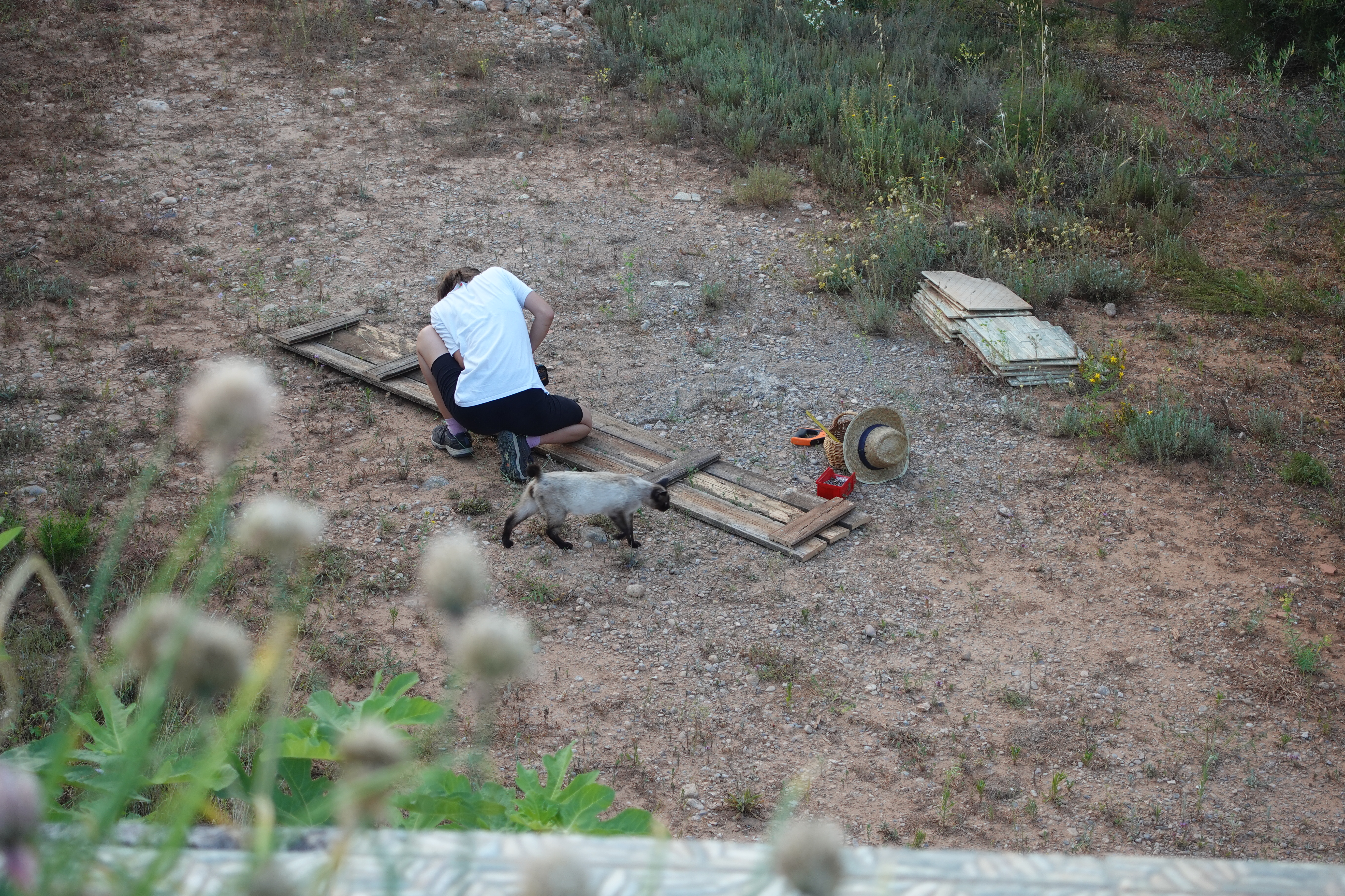 그런데 나중에 보니, 산드라가 집 아래 쌓아둔 나무판들 중 적당한 것을 골라 직접 잘라내고는, 그걸 어깨에 둘러메고 돌아오고 있었던 거예요.