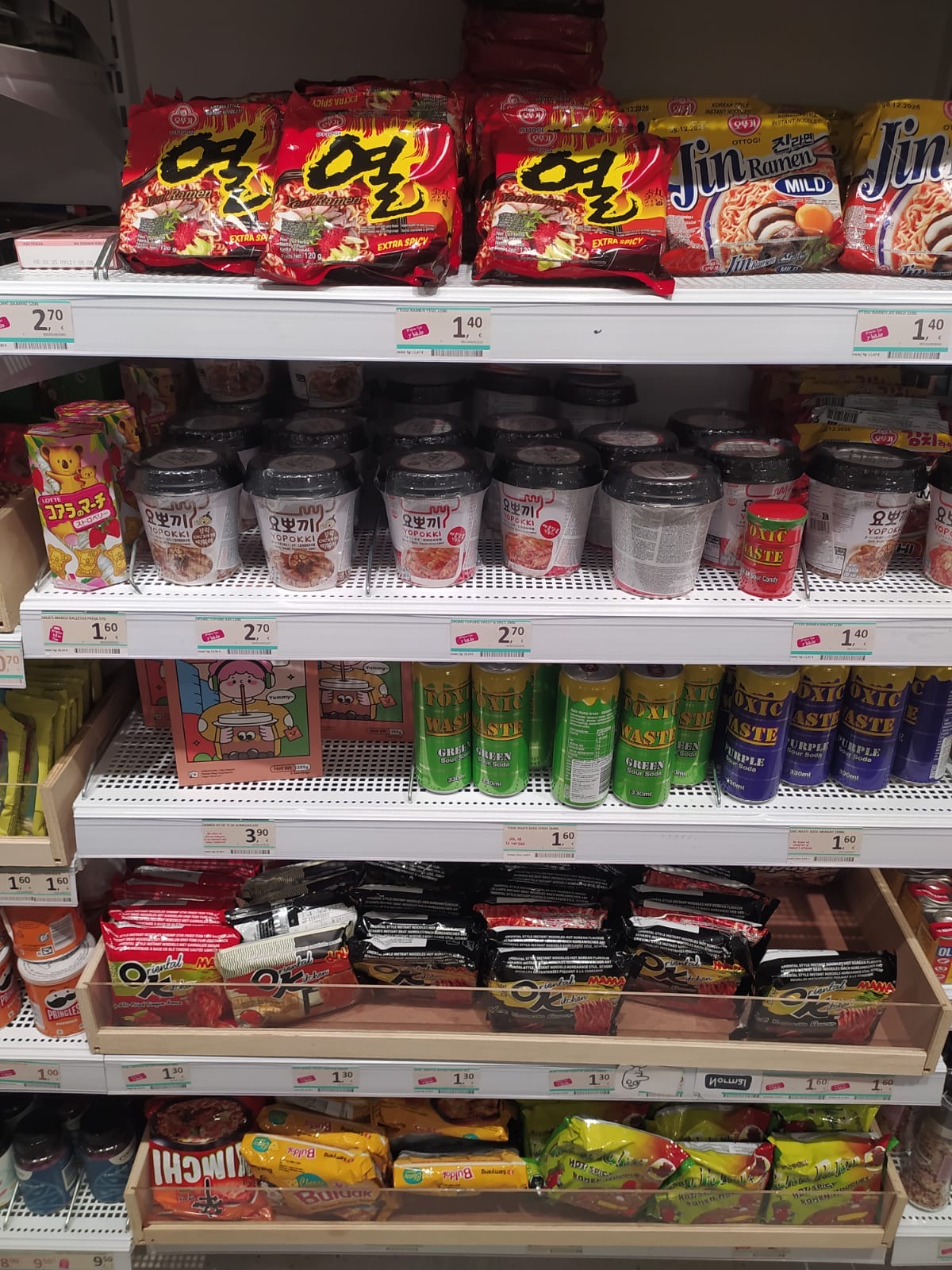 위 사진의 쇼핑몰인데, 젊은이들에게 인기가 많은 각종 소소한 제품을 팔고 있더라고요. 그중에 한국 음식이 떡~ 하니 있으니 얼마나 놀랍던지요!!!