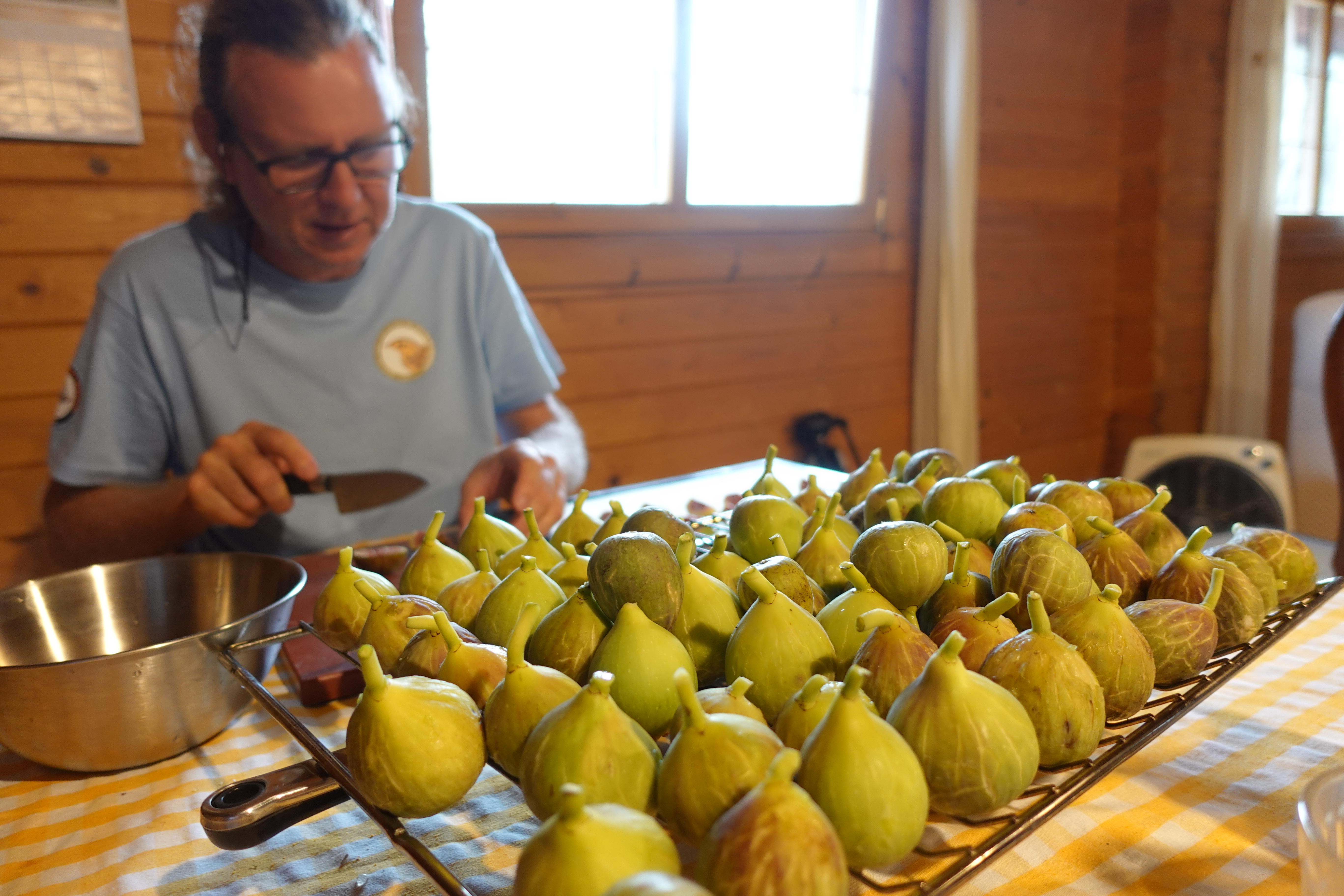 남편은 잘 씻은 무화과를 꼭지 자르고 4 등분하여 식품건조기에 말리기로 했습니다.