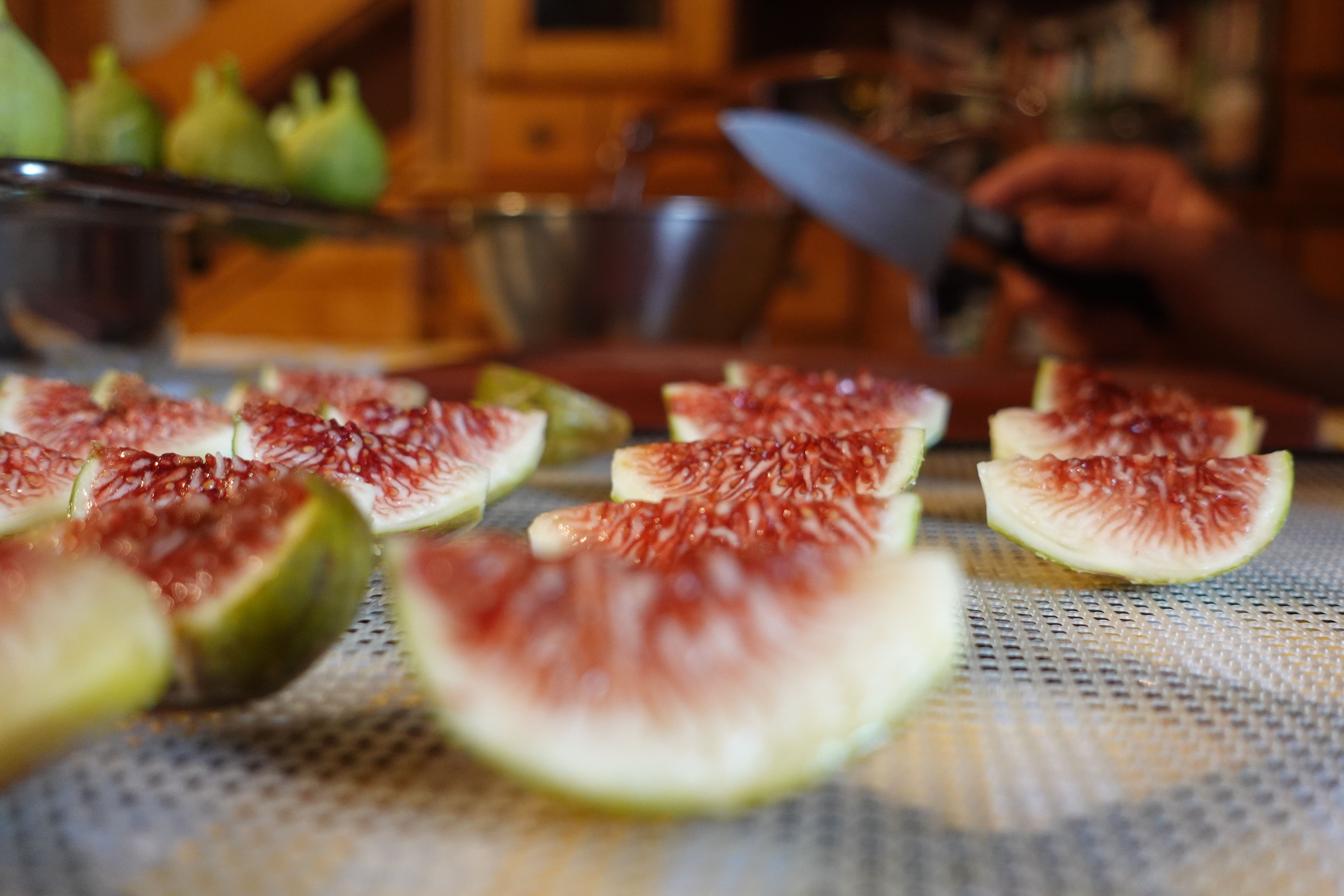 남편은 잘 씻은 무화과를 꼭지 자르고 4 등분하여 식품건조기에 말리기로 했습니다.
