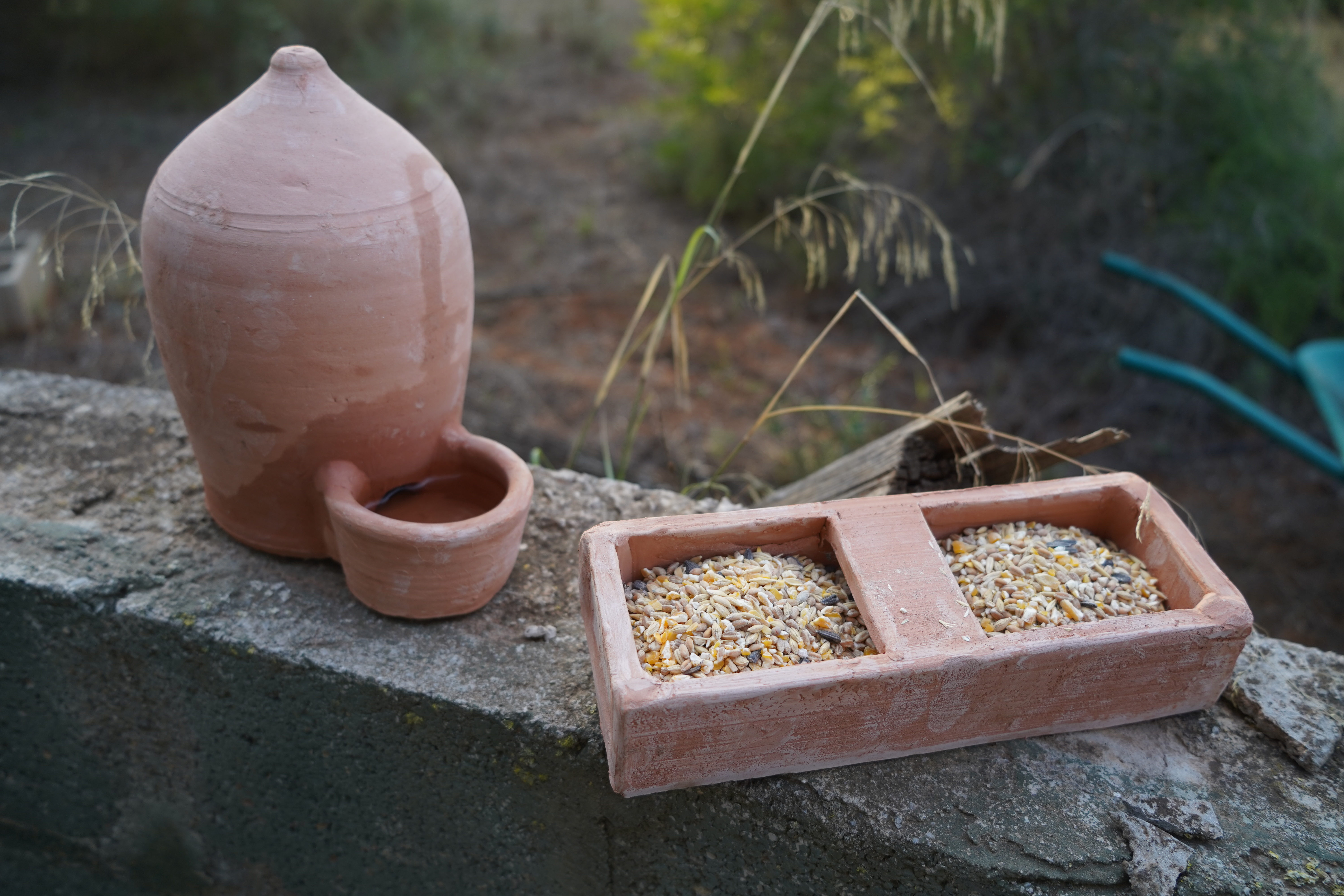 그리고 새 암탉을 위해 마침 작년에 수영장에서 알게 된 스페인 친구가 “이걸 써보라”며 주었던 테라코타 물병과 모이통을 넣어줬습니다. 완전 귀여운 물병과 모이통~! 스페인 전통의 토기인데, 너무 마음에 듭니다.