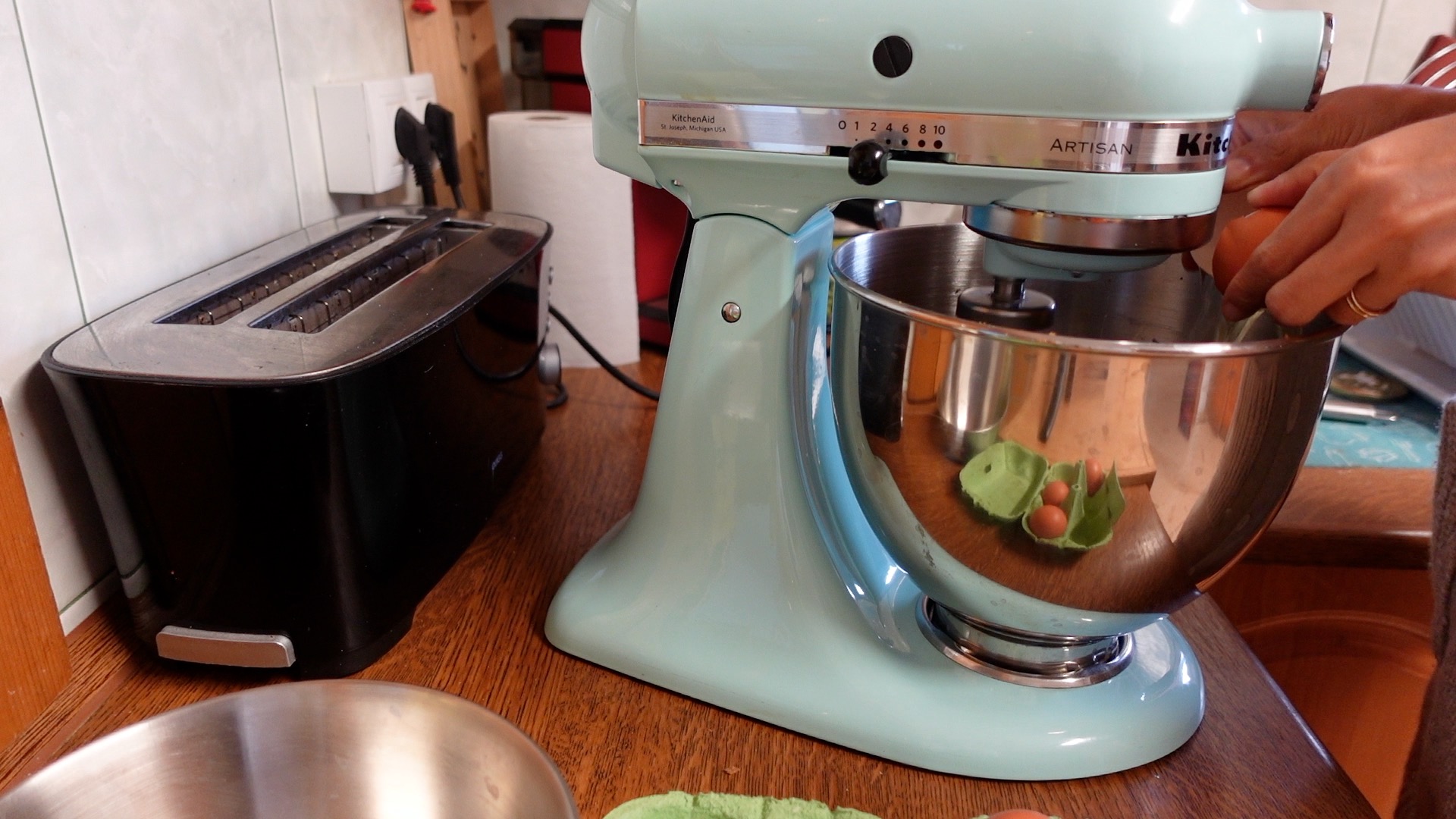 거기에 달걀을 하나씩 넣어가면서 크림 상태를 유지하면서 섞어주세요. 그런데 크림 상태 유지하기가 조금 어렵더라고요. (사실 그 상태를 유지하지 않아도 별 탈은 없었습니다)