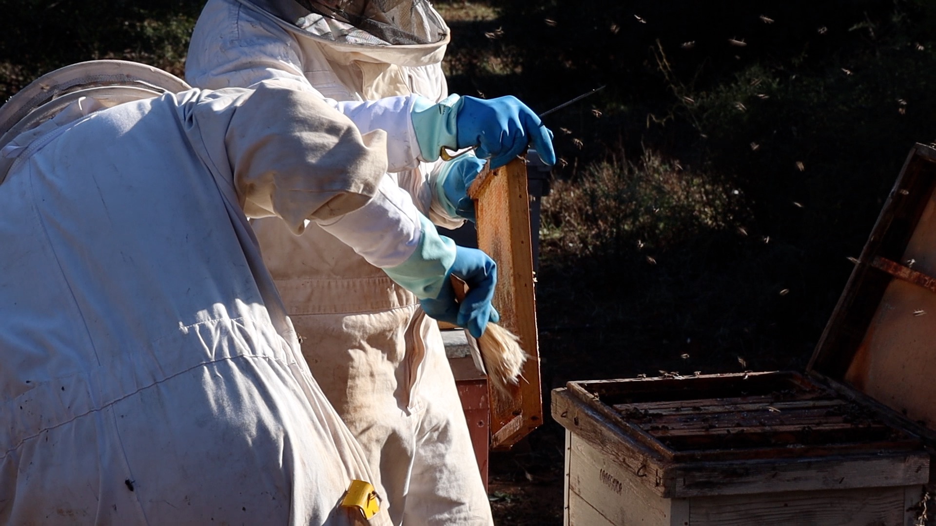 벌집을 꺼내면 벌이 다치지 않게 조심스럽게 솔로 벌떼를 쓸어줘요. 한 녀석이라도 다치면 안 되기에 선생님 부부는 정말 조심히 다루시더라고요.