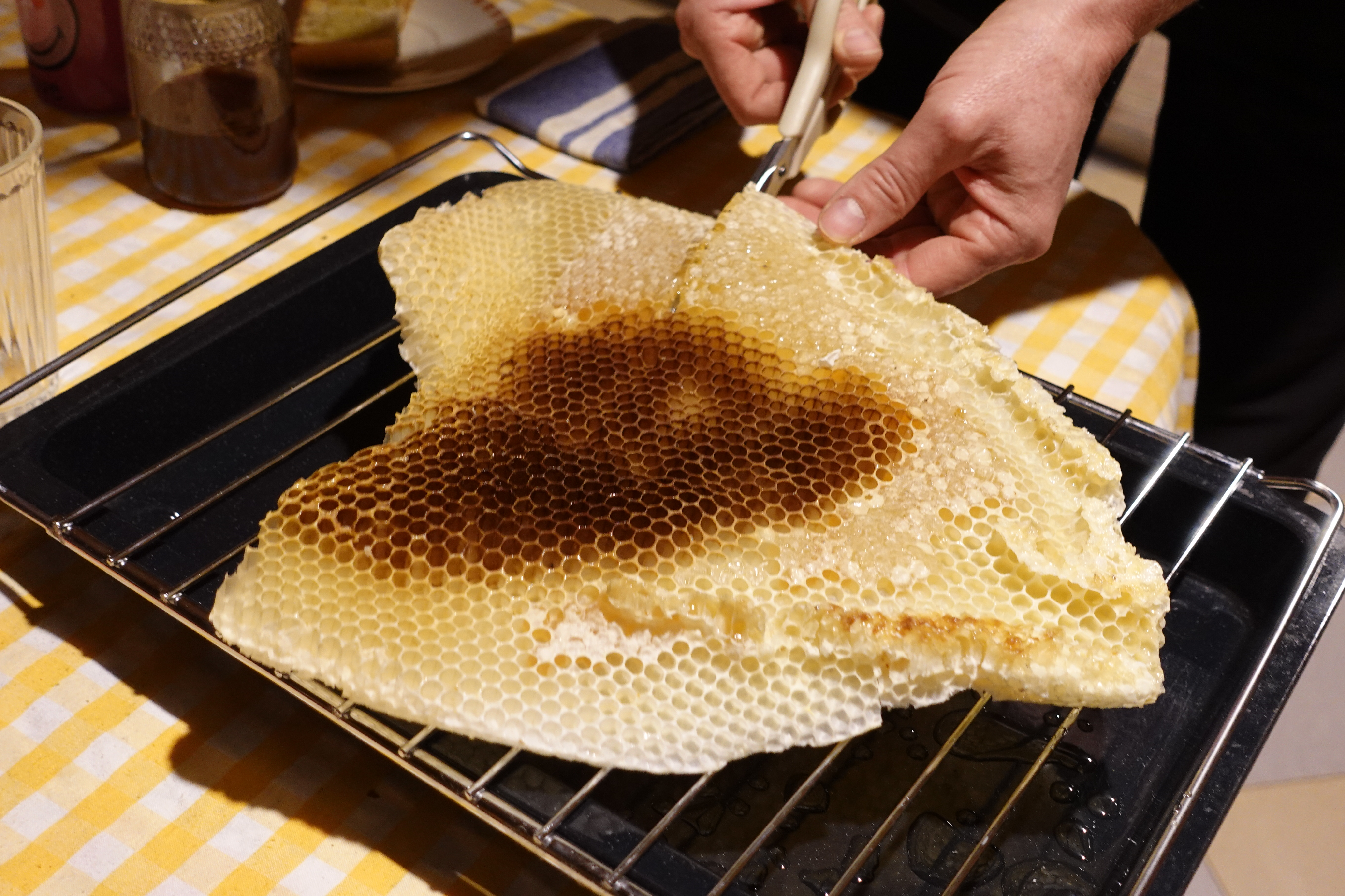 덕분에 우리도 꿀 몇 병을 얻었고, 벌집꿀도 몇 조각 얻어먹게 되었습니다.